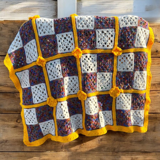 【blanket/rug】crochet blanket rug 約126㎝×約121㎝