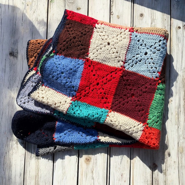 カラフルな色の配置でリビングやソファー、子供部屋はもちろん、インテリアとしても置いておくだけで可愛いです。 ※ハンドメイドならではの目の荒さ、補強あと、糸の継ぎ足し箇所がある場合がございます。 ※こちらハンドニットの為素材、洗濯方法の記載がございません。その為ウールが少なからず使用されている場合がございます。 その場合髪を洗う様に、シャンプー(優しく押し洗い)→トリートメント又はコンディショナー(優しく押し、染み込ませる様に)→軽く絞りネットに入れ洗濯機の脱水にかける(脱水のみを選択 )→形を整え天日干し。の順に洗ってあげると縮んだり、目が固く詰まることもなく、手触りも良くいい香りに仕上がります。是非お試し下さい! カラー: サイズ: 約117㎝× 約178㎝ 素材:記載無し おそらくAcryl 状態:シミややあり/毛玉毛羽立ちあまりなし ------------------------------------------------ 商品のキャンセル又は返品交換は承っておりません。ご了承ください。 ⚫︎古着特有のにおいがある事がございます。 ⚫︎シミ、ヨゴレ、スレ等は目立つ箇所、又は着用に支障が出る箇所は写真や説明文にて記載しておりますが、それ以外はそのアイテムの味や、商品価値とさせて頂いておりますのでご了承下さい。 ⚫︎古着の為どうしても買い付け当時からのダメージや経年に伴う変色、傷みがございます。 ⚫︎古着の状態には、受け取り方により個人差がある為ご理解の程宜しくお願い致します。 ⚫︎お手持ちの端末により商品の色合いに多少の差があることがございます。 ⚫︎商品着用写真につきましては着用撮影後、再度高温スチームよる除菌、又は、天日干しによる殺菌・消臭を行ってからの発送を心掛けております。
