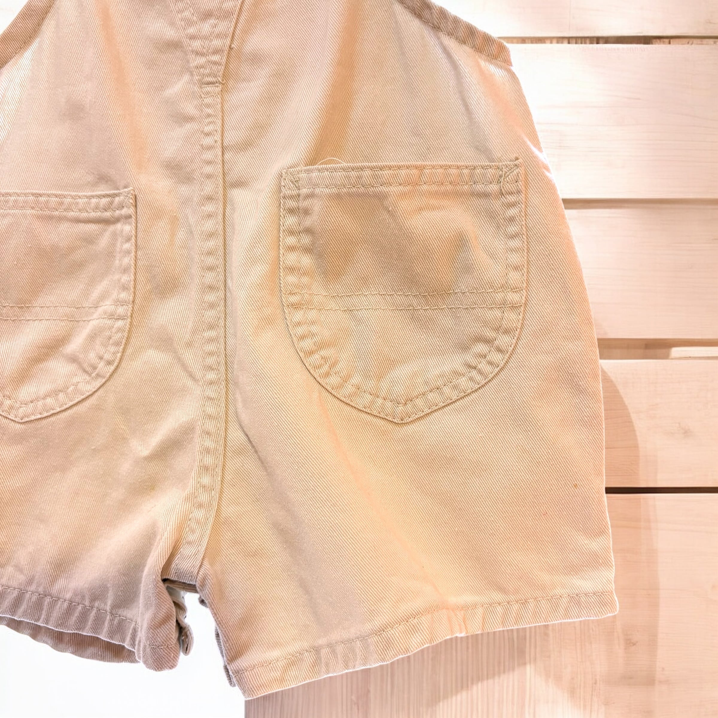 平置き採寸:総丈(肩紐入れず)約35㎝(肩紐入れて)1番長くした状態約47㎝/身幅(ウエストボタン下計測)約29㎝/股下約4㎝
