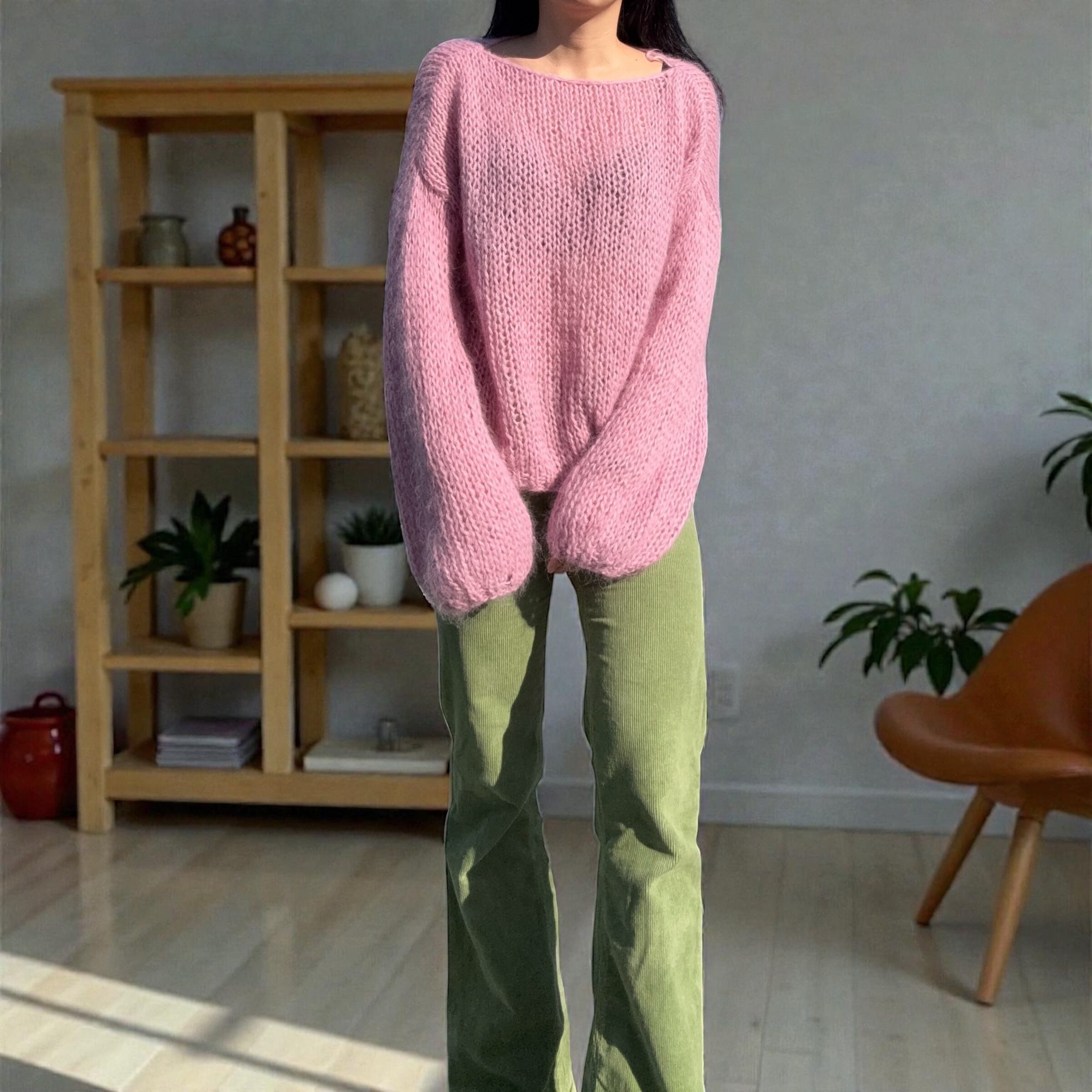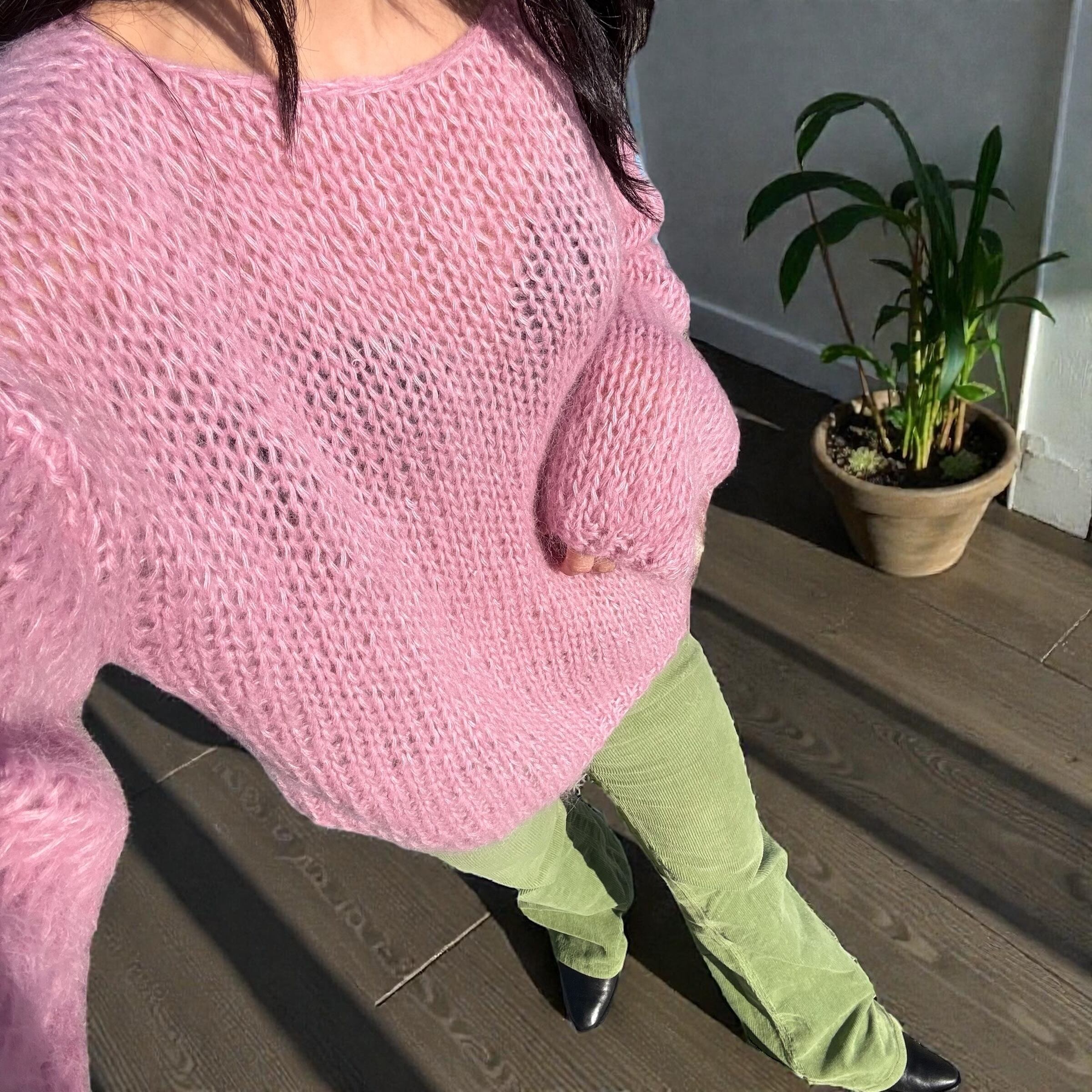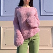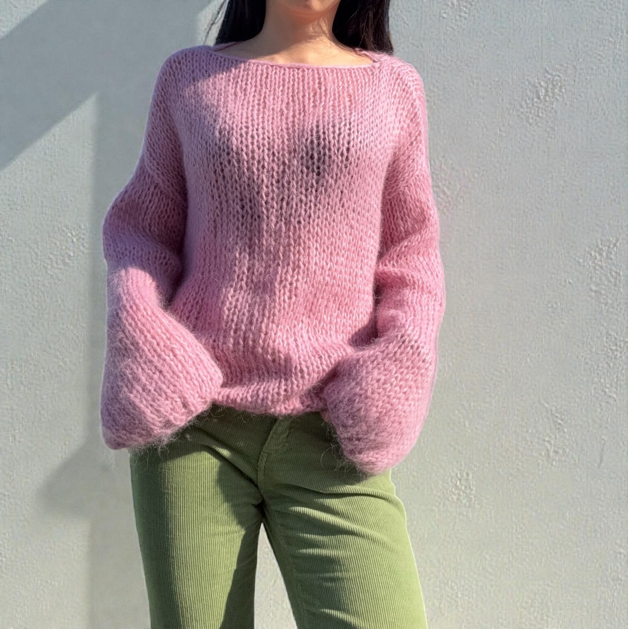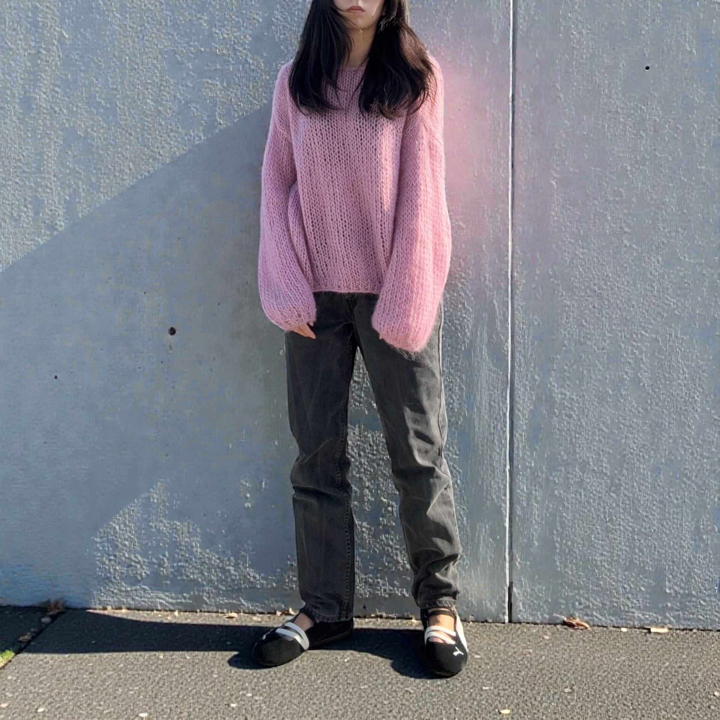 モヘアならではのふんわりとしたシルエットが可愛いニットです。