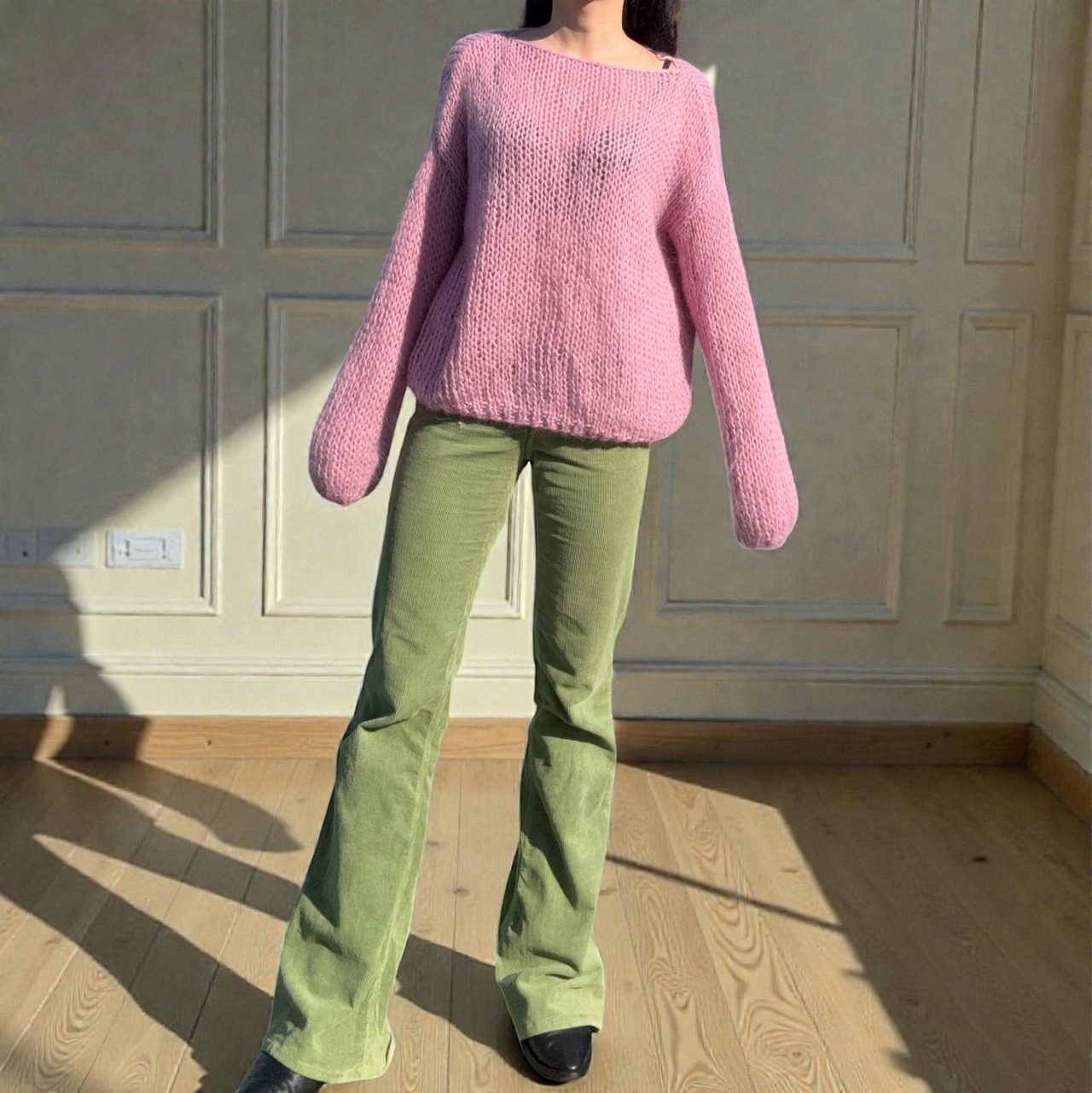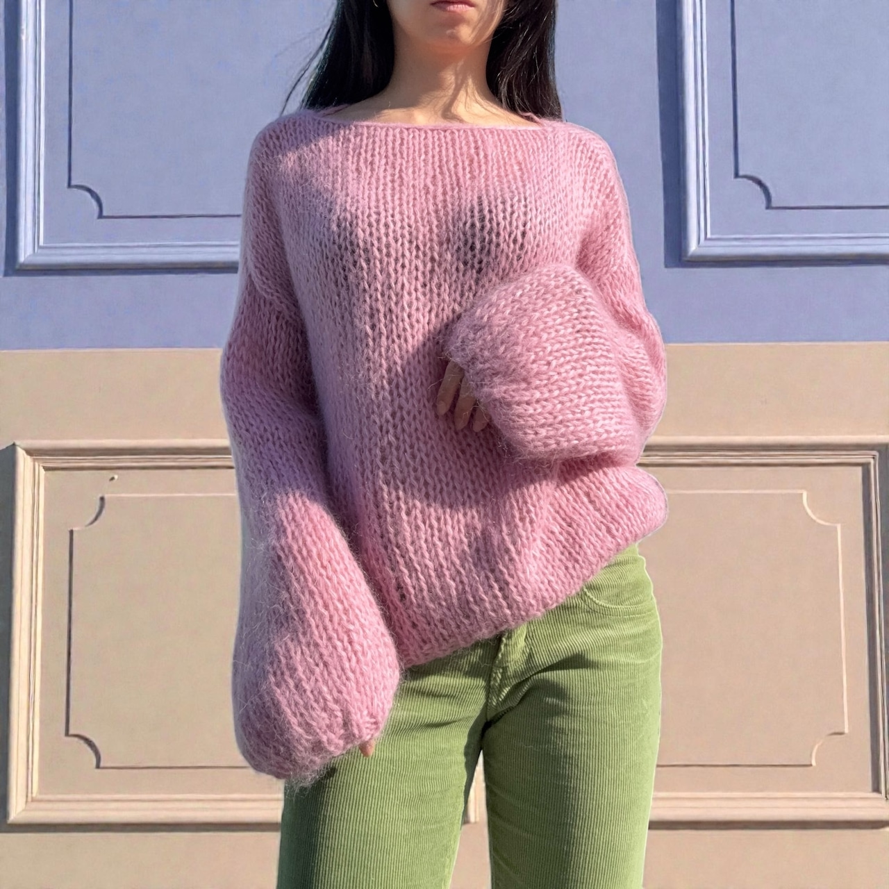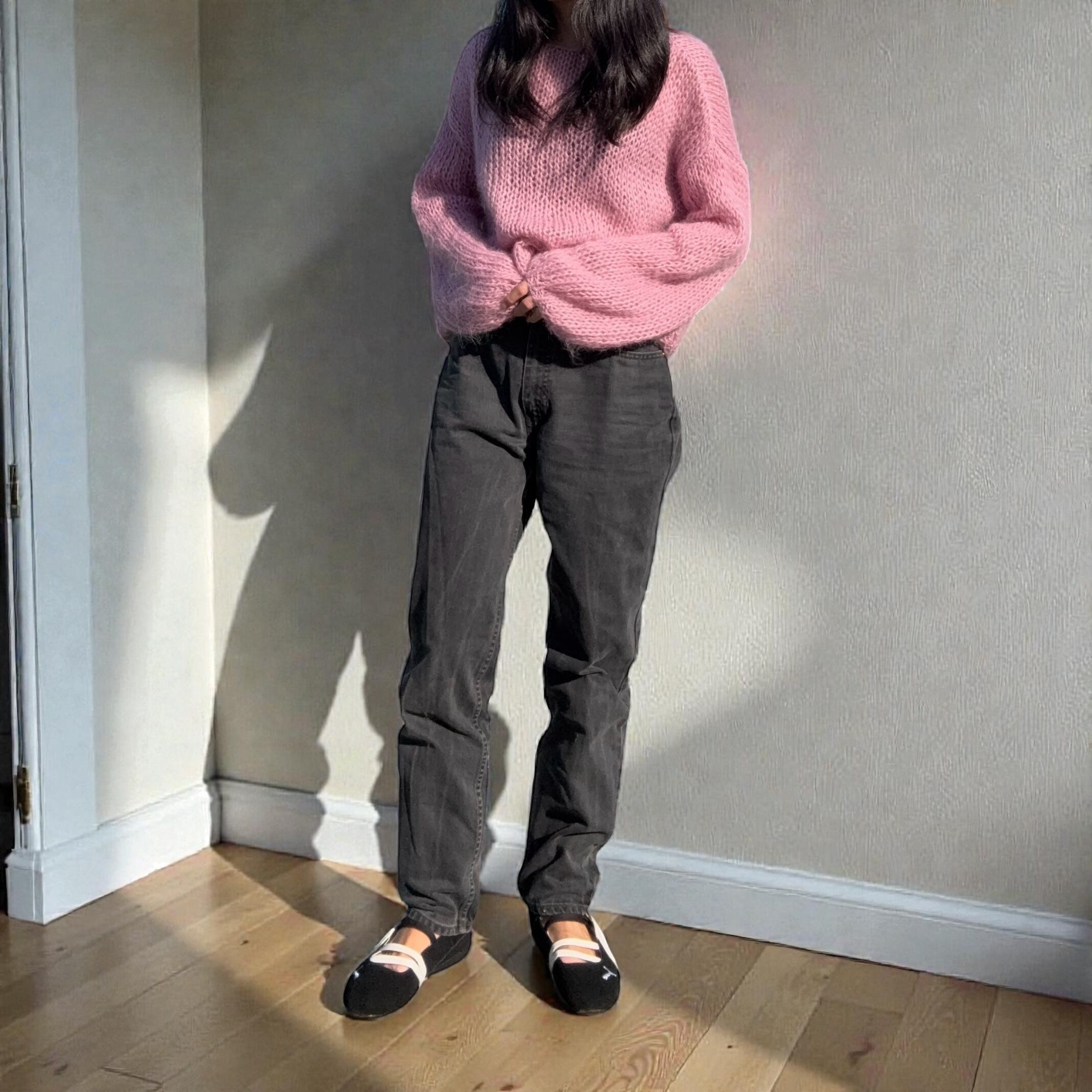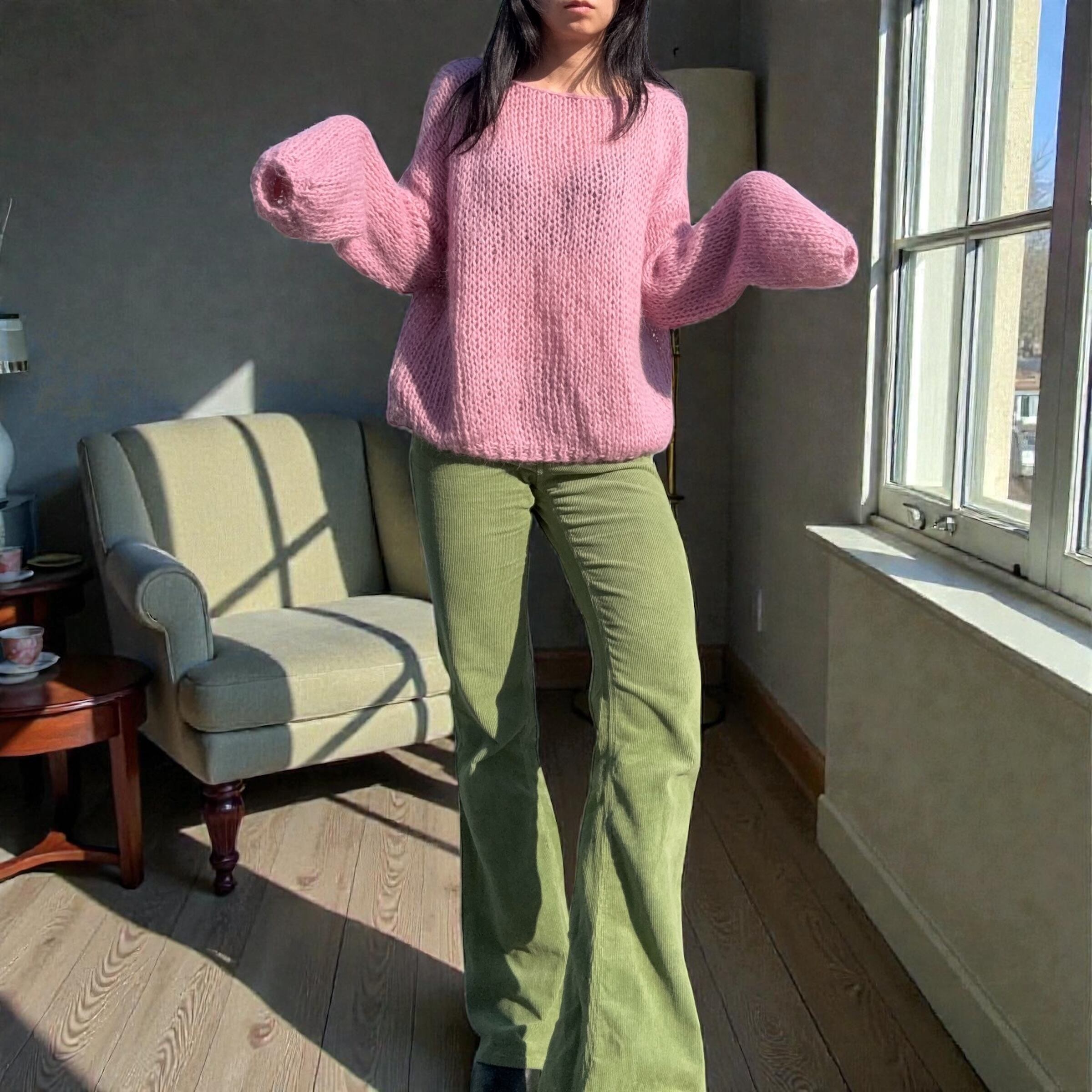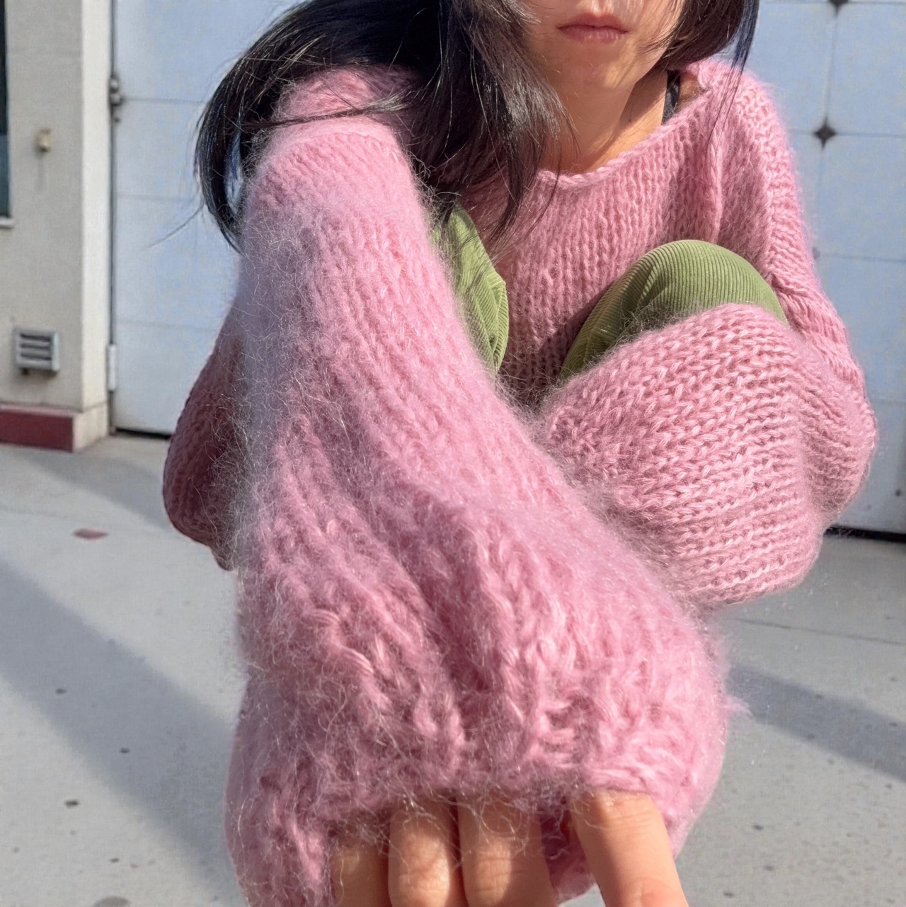 モヘアならではのふんわりとしたシルエットが可愛いニットです。