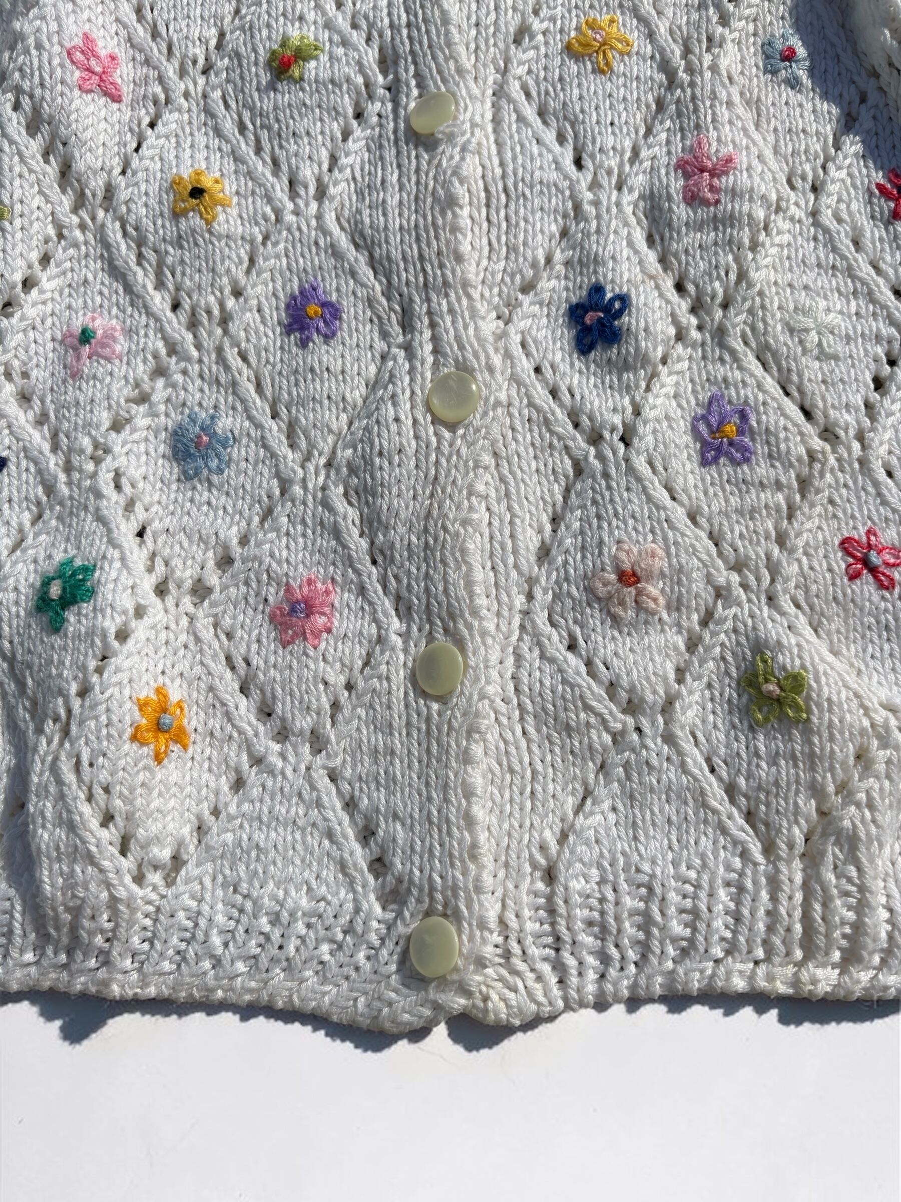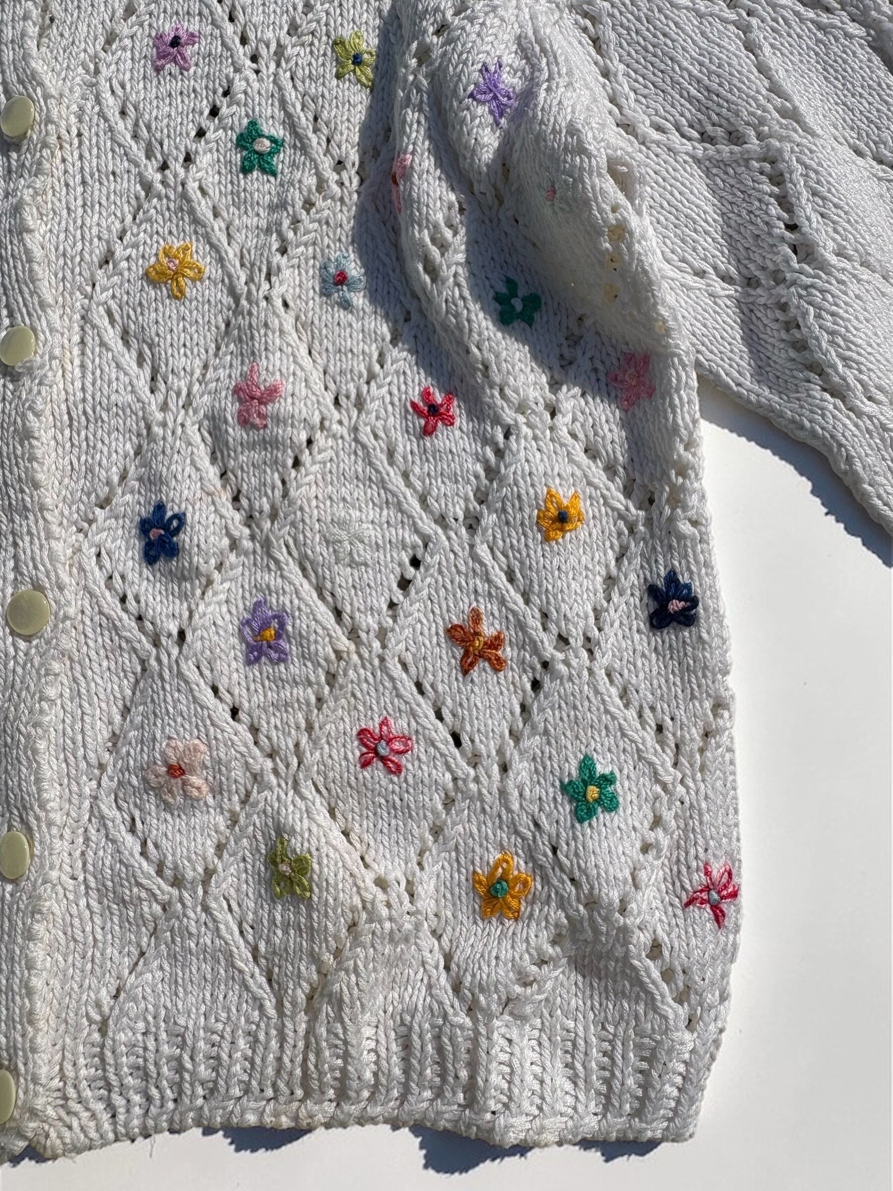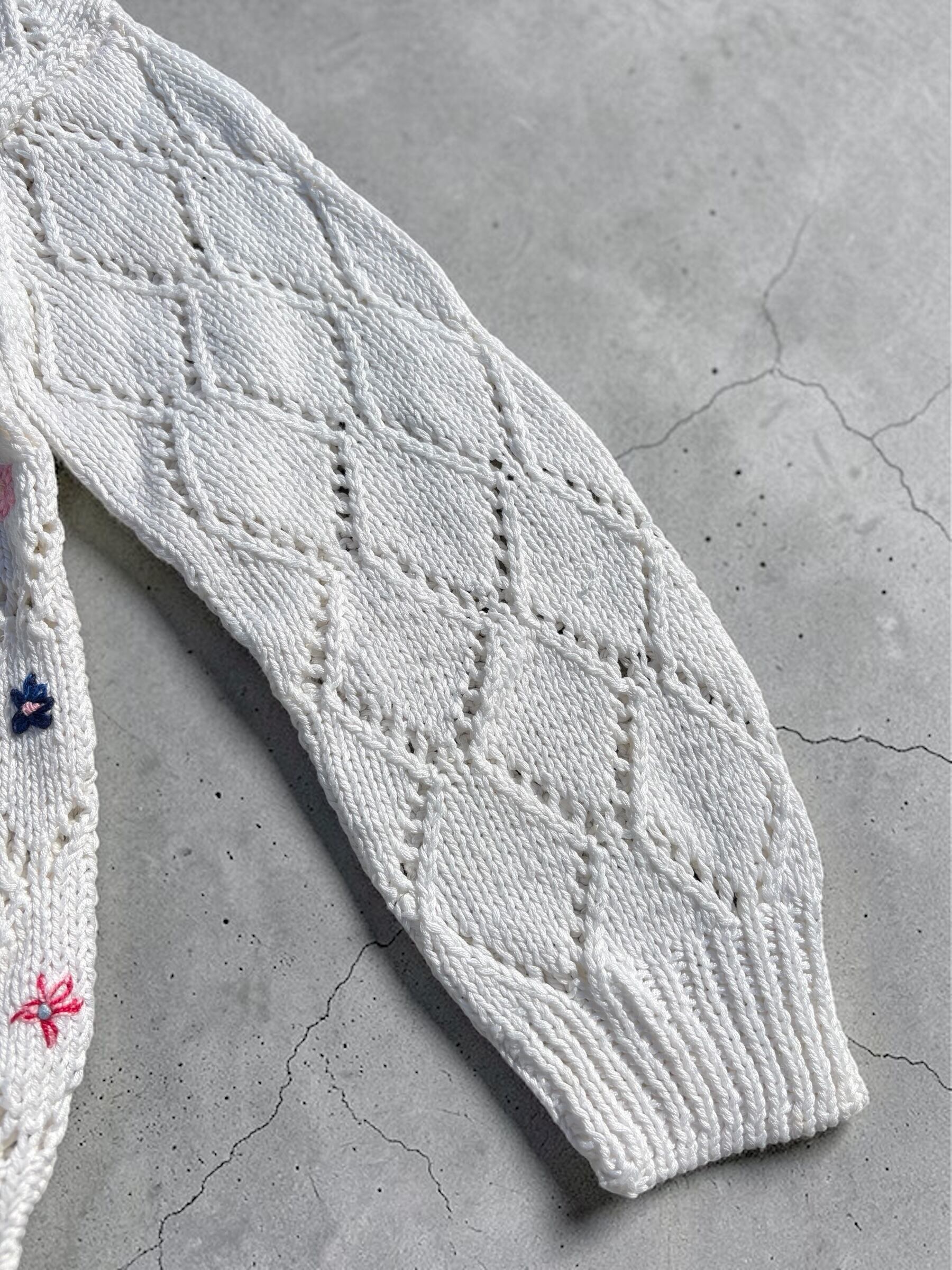 コットンニット素材の刺繍入りカーディガンです。