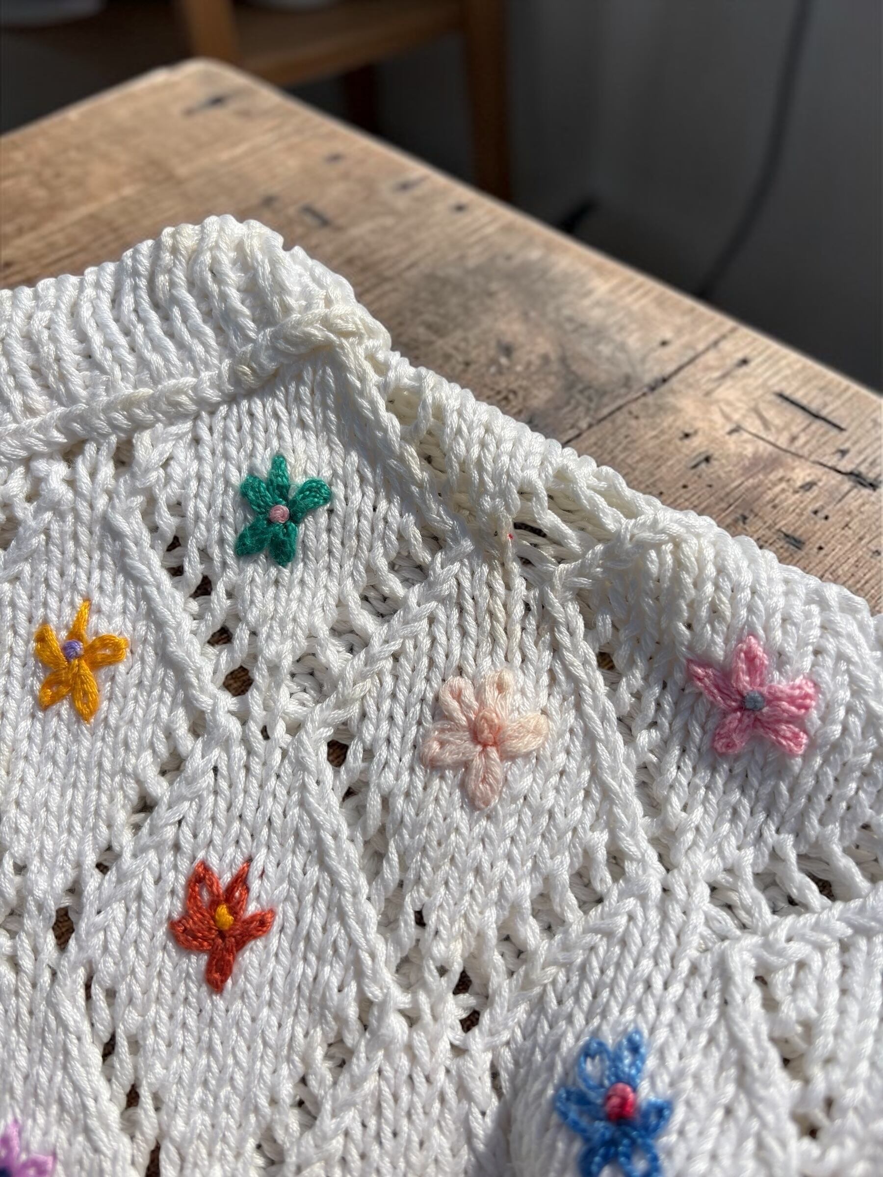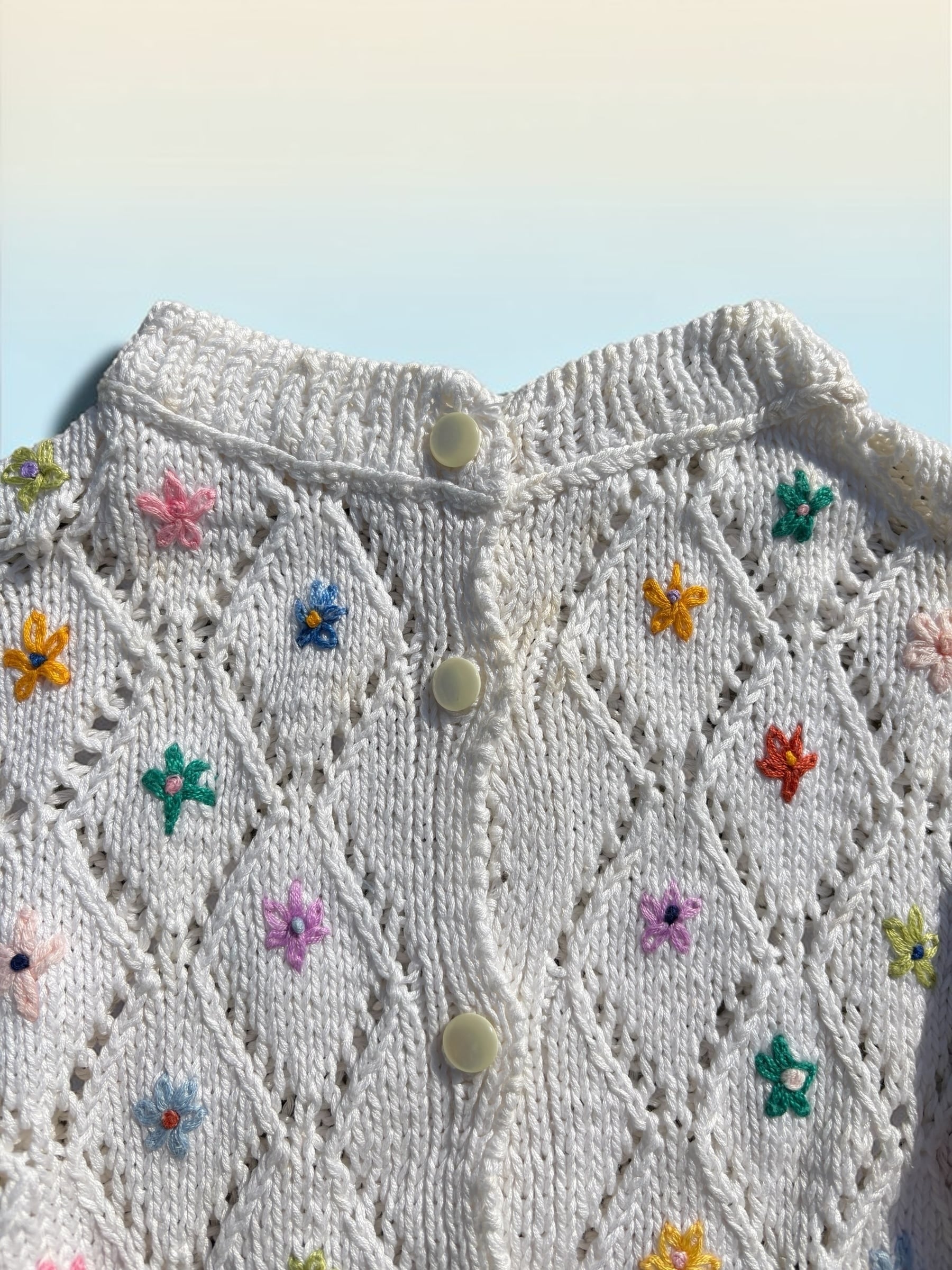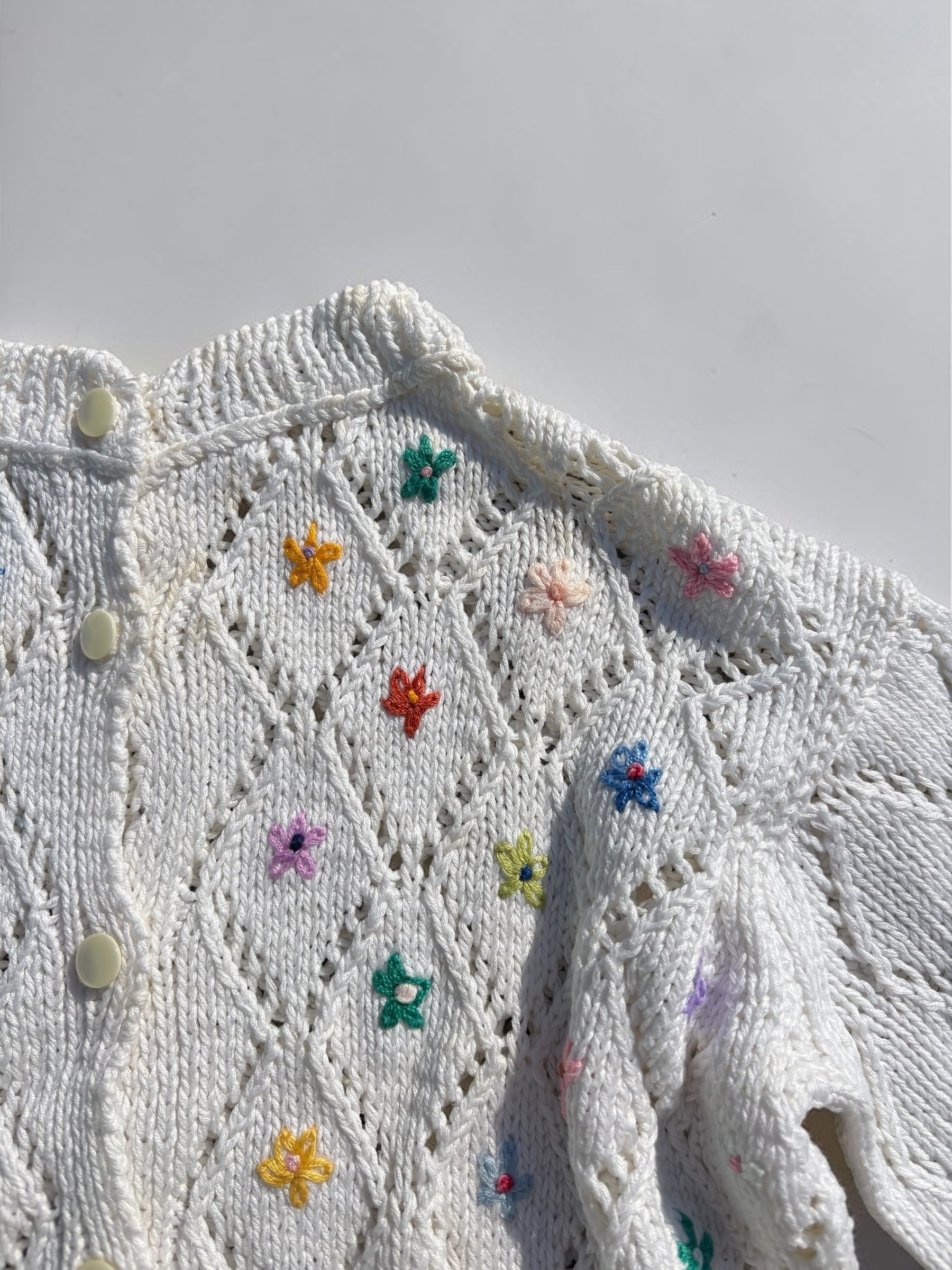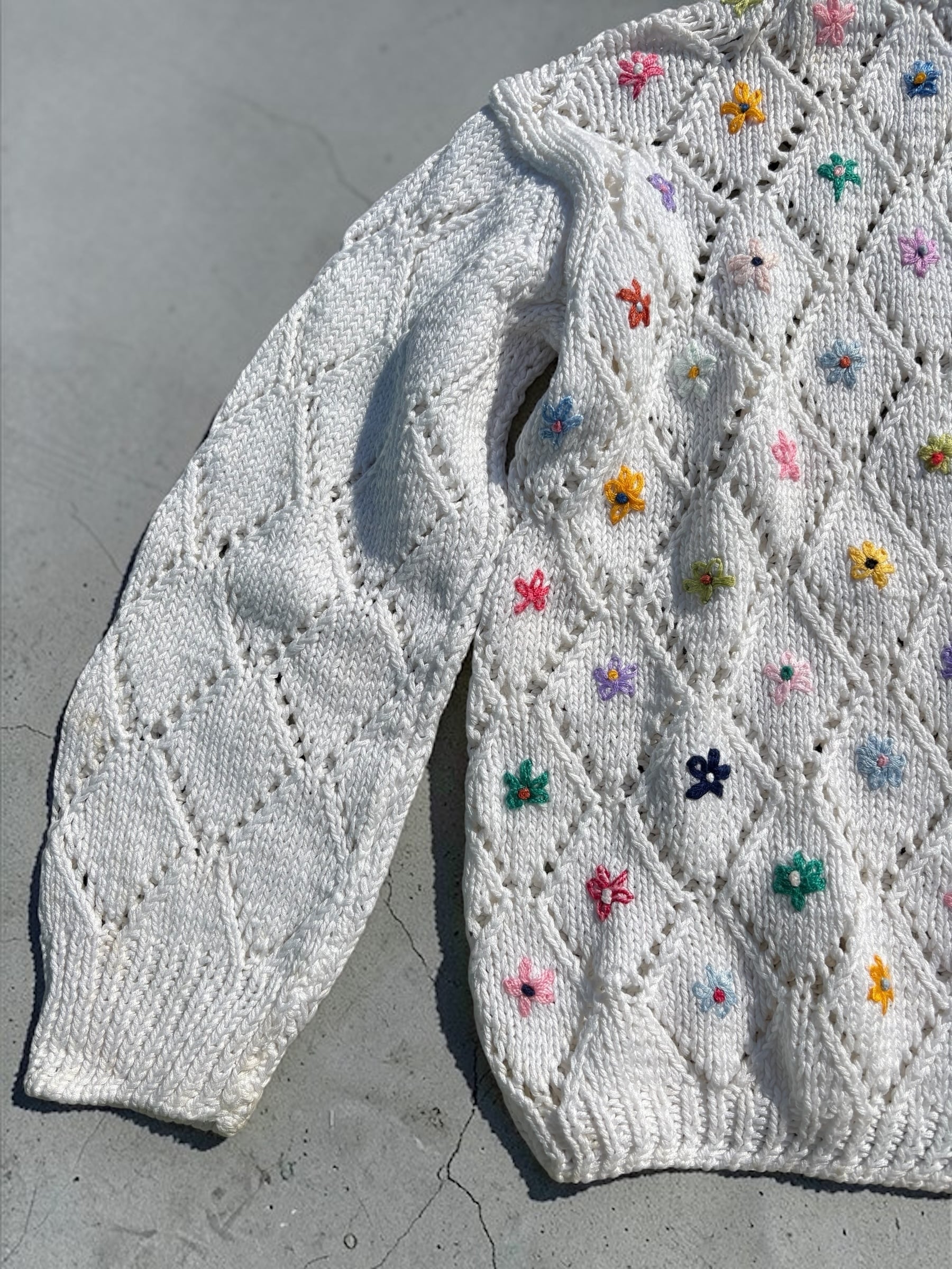 コットンニット素材の刺繍入りカーディガンです。