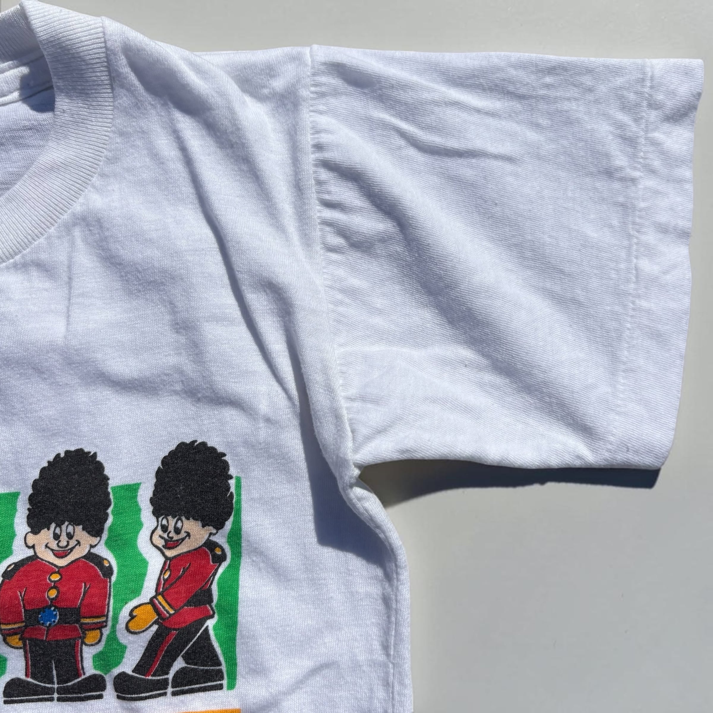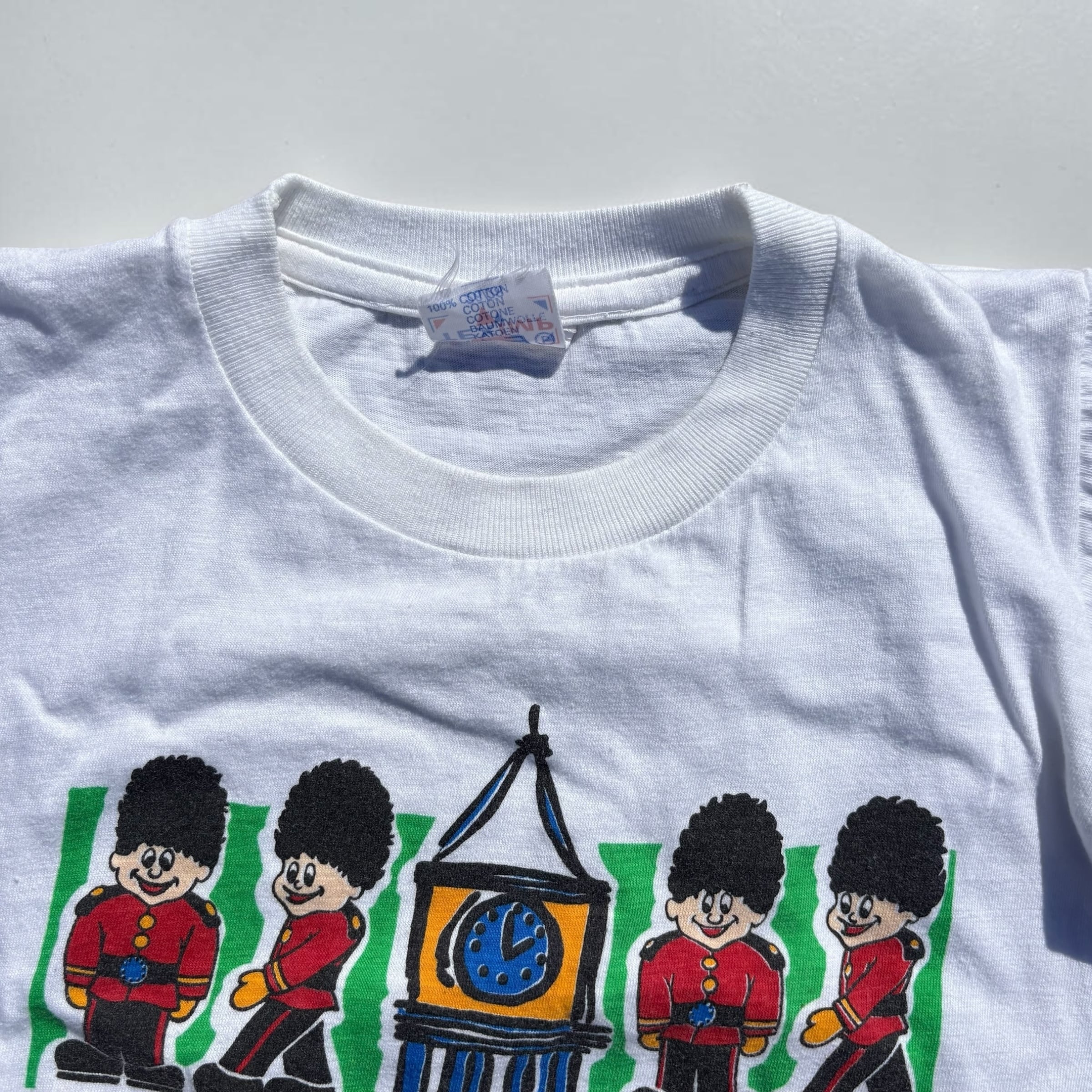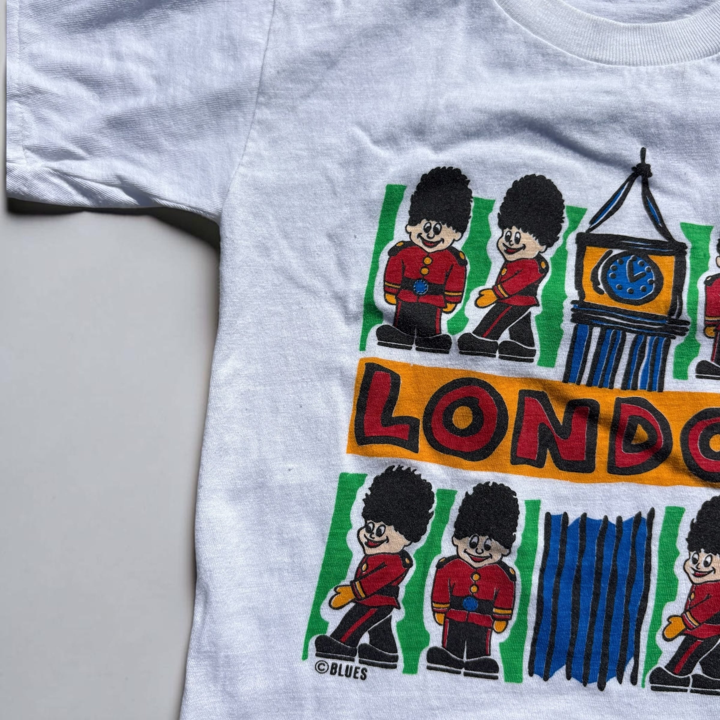 ロンドンの文字と、兵隊モチーフのカラフルなプリントが目を引くTシャツです。