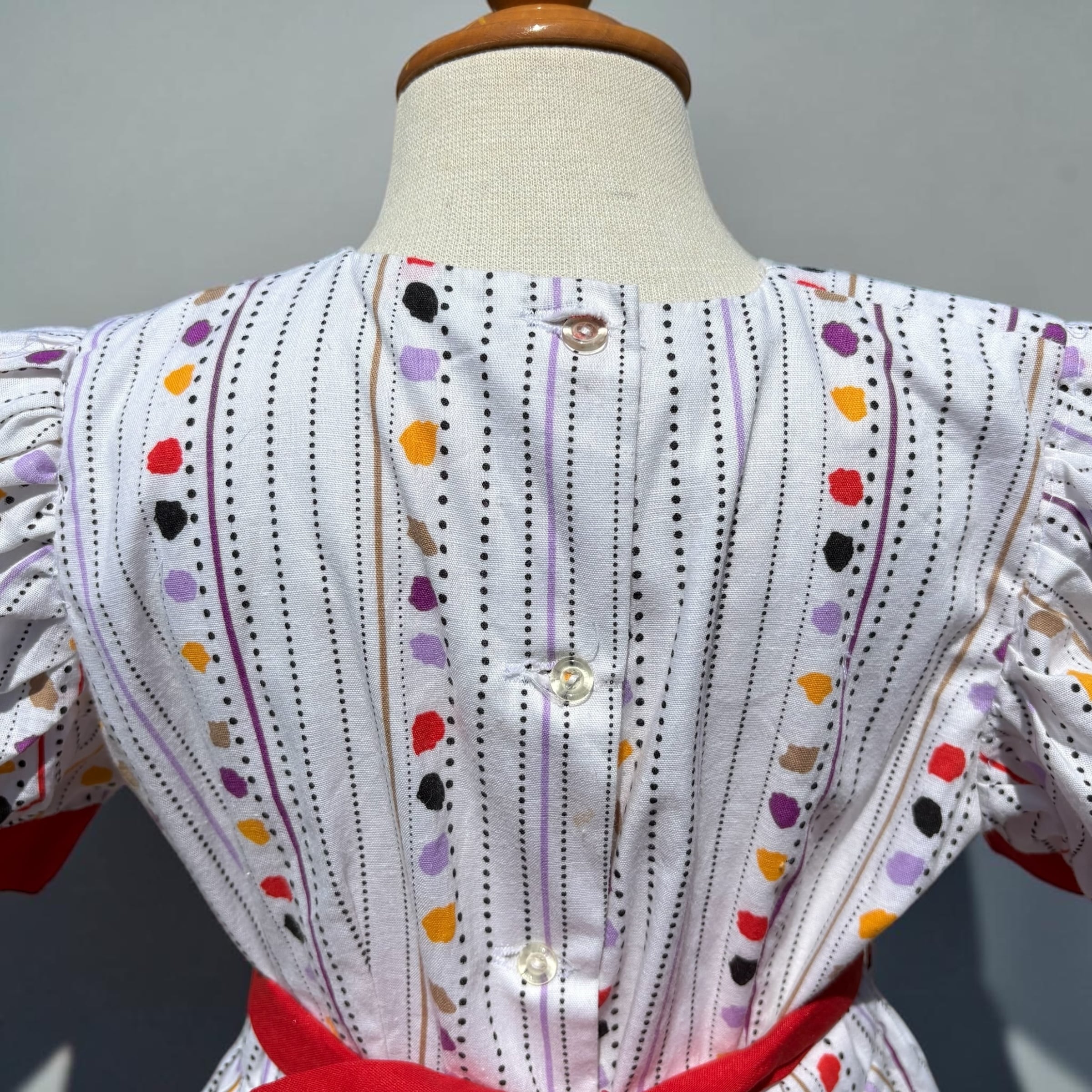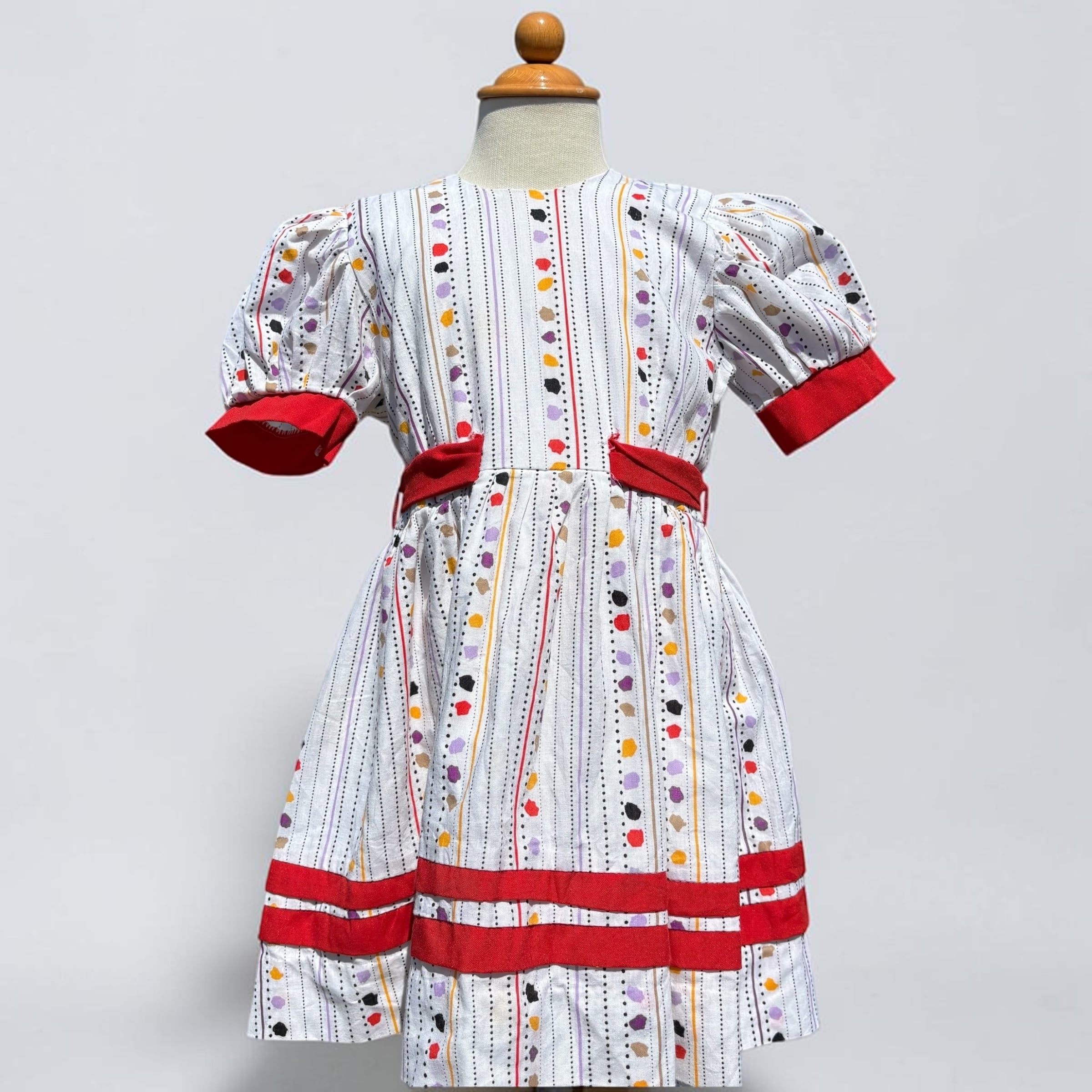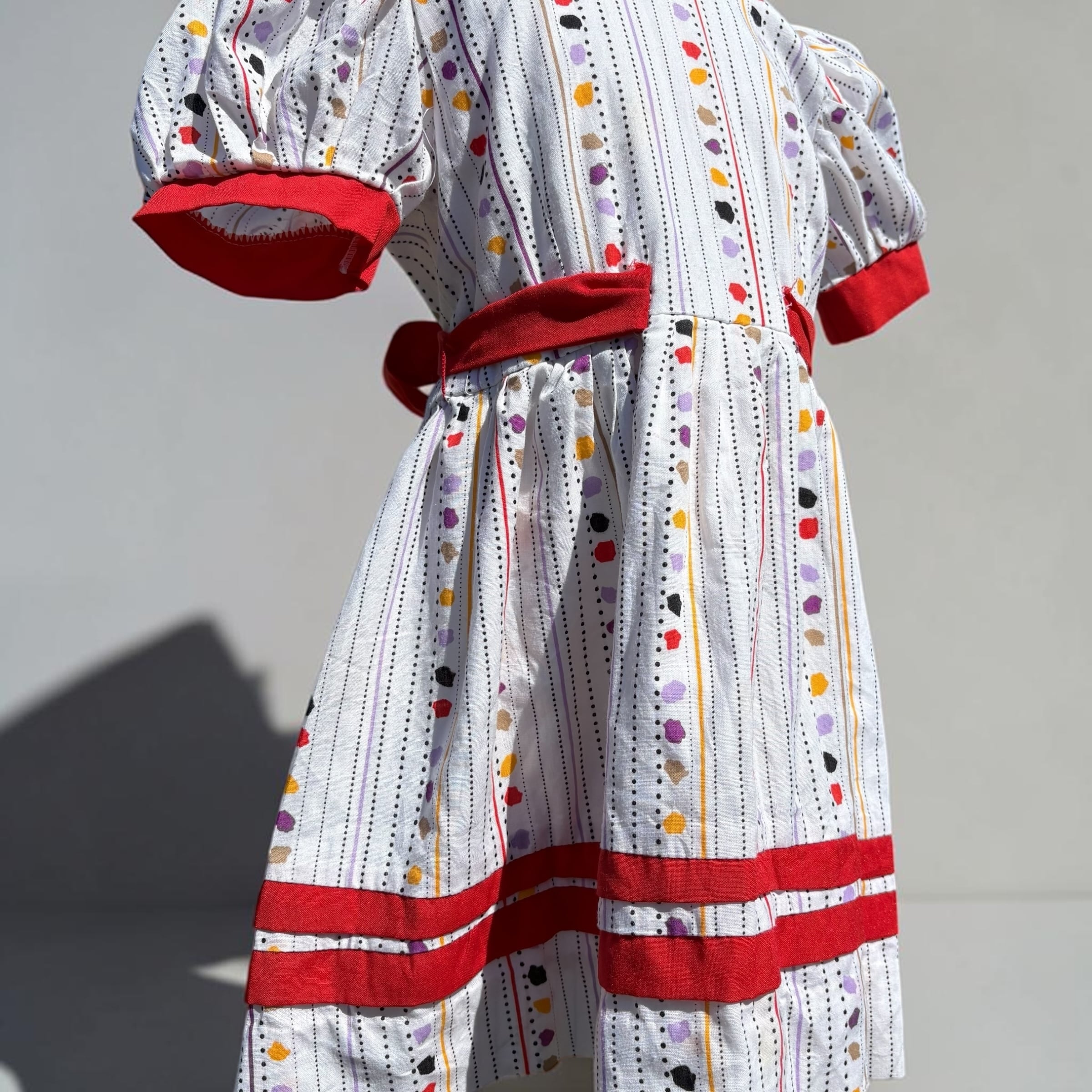 【KIDS】Vintage Handmade Ribbon Dress White × Red size: 100–120cm(3-5y)