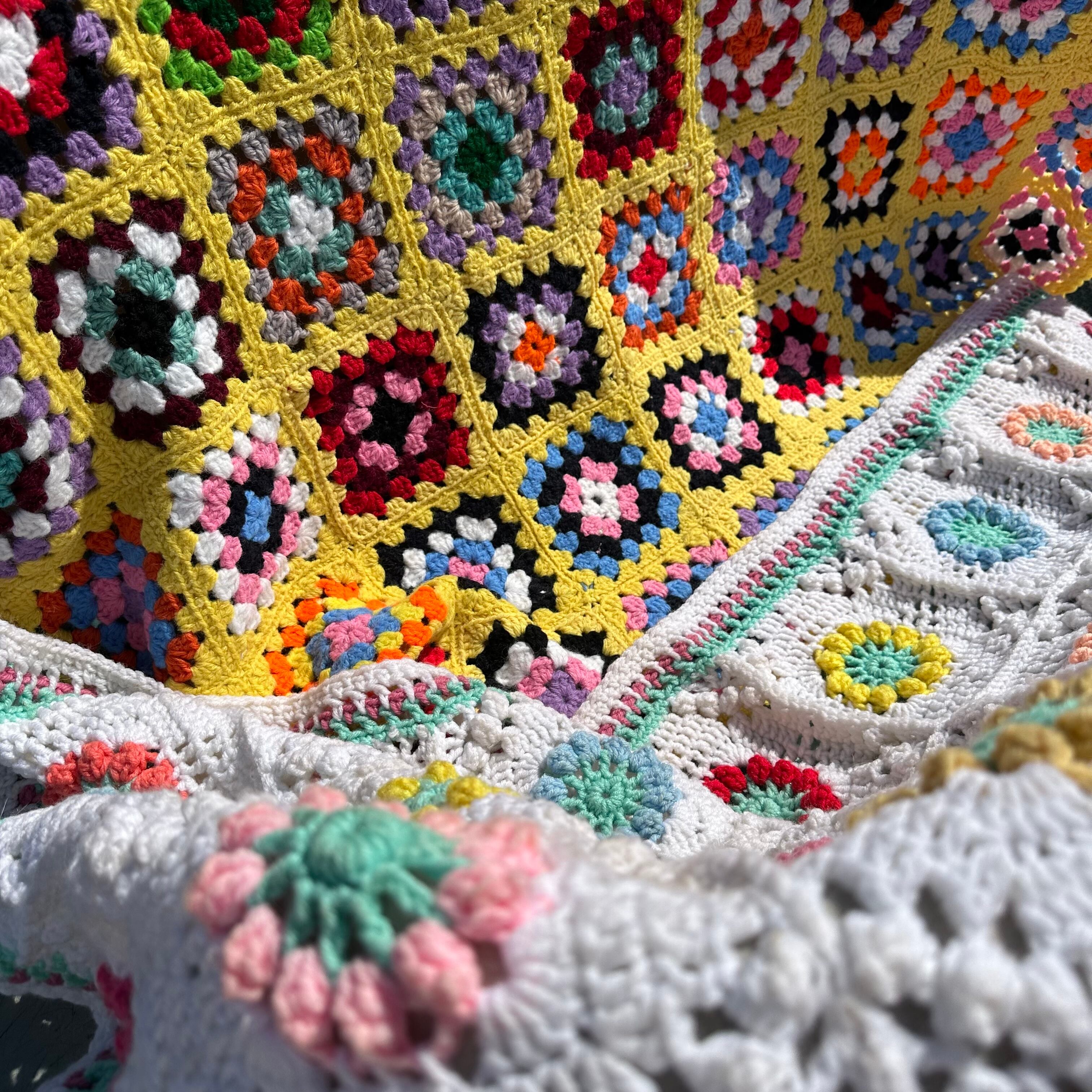 手編みのラグ、ブランケットです。