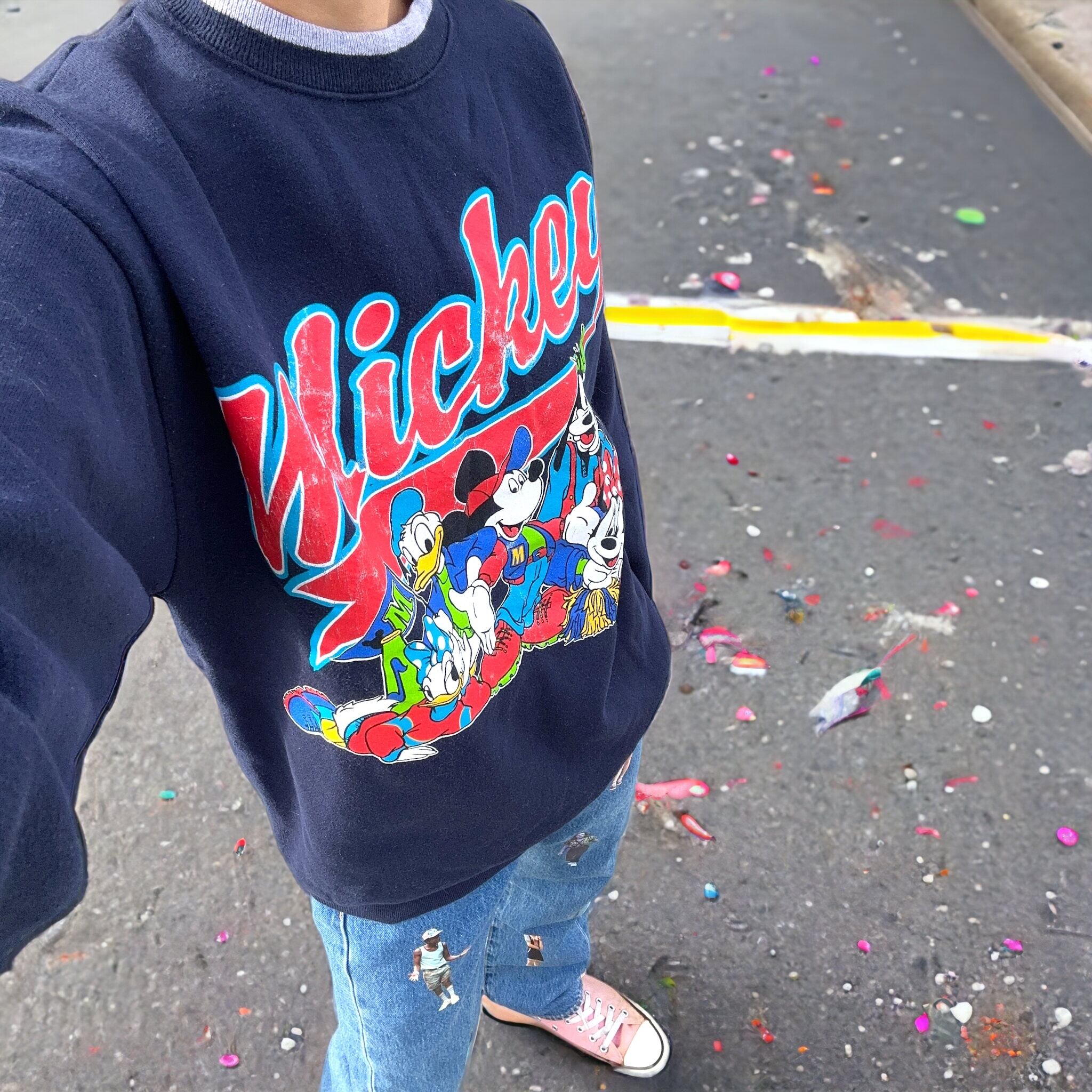 状態:表キャラクタープリントの薄れあり/全体的にスウェット生地特有の毛玉あり/目立つダメージはなし