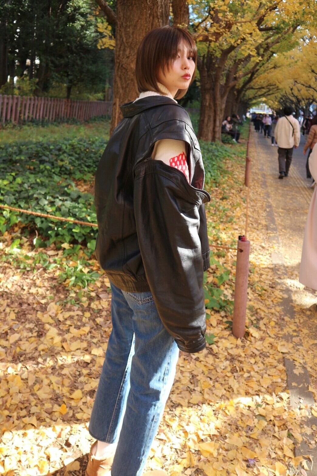 【LADIES'】vintage leather jacket(shoulder zip )