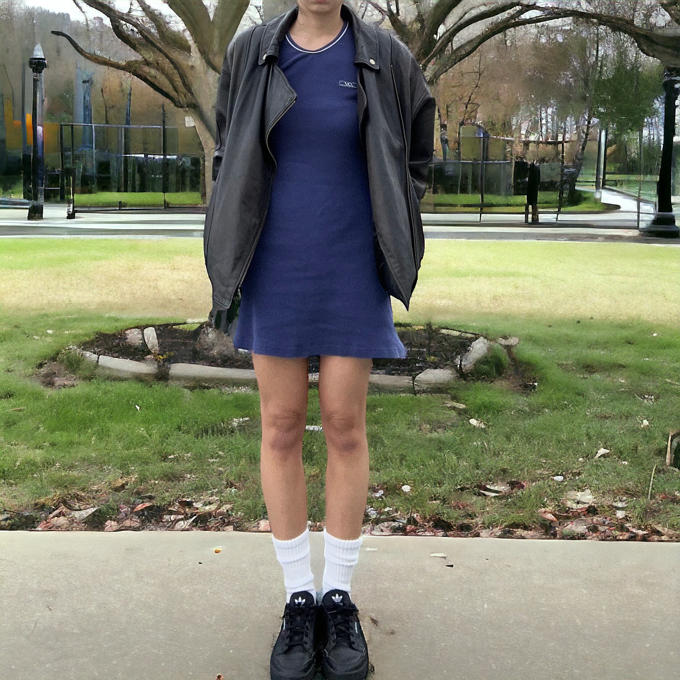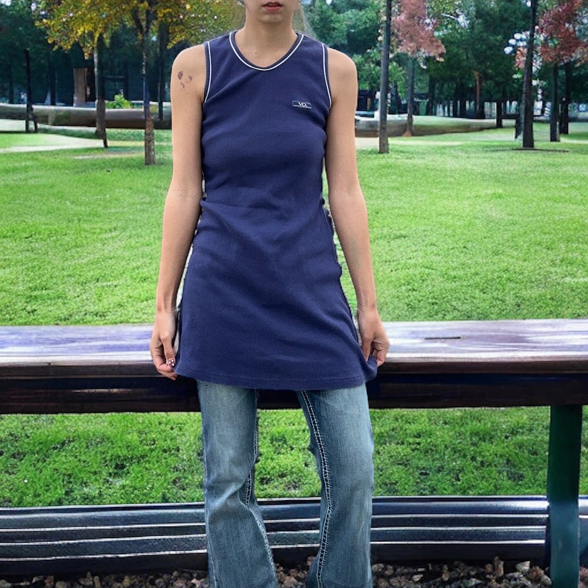ネイビーブルーのリブタンクトップが特徴の、落ち着いた色合いが魅力のワンピースです!