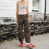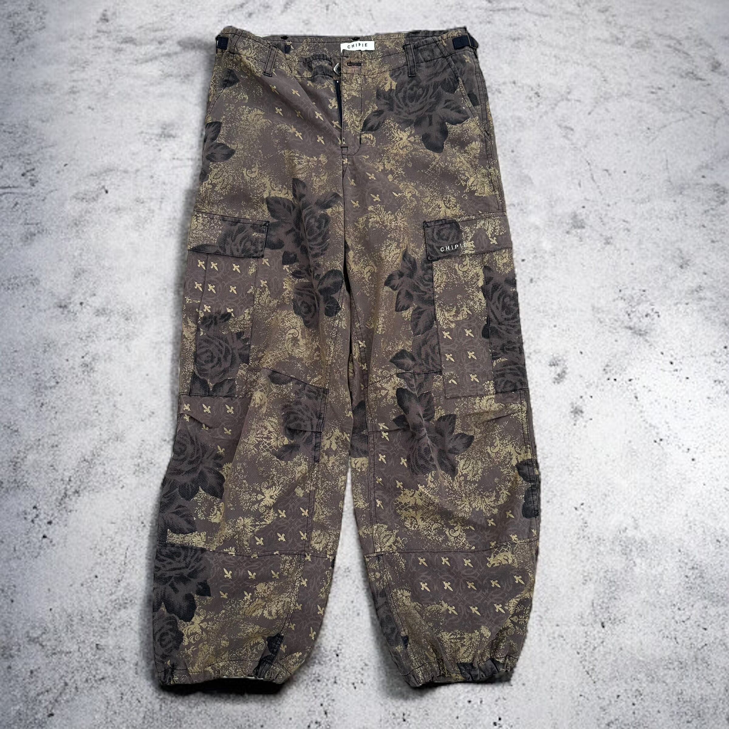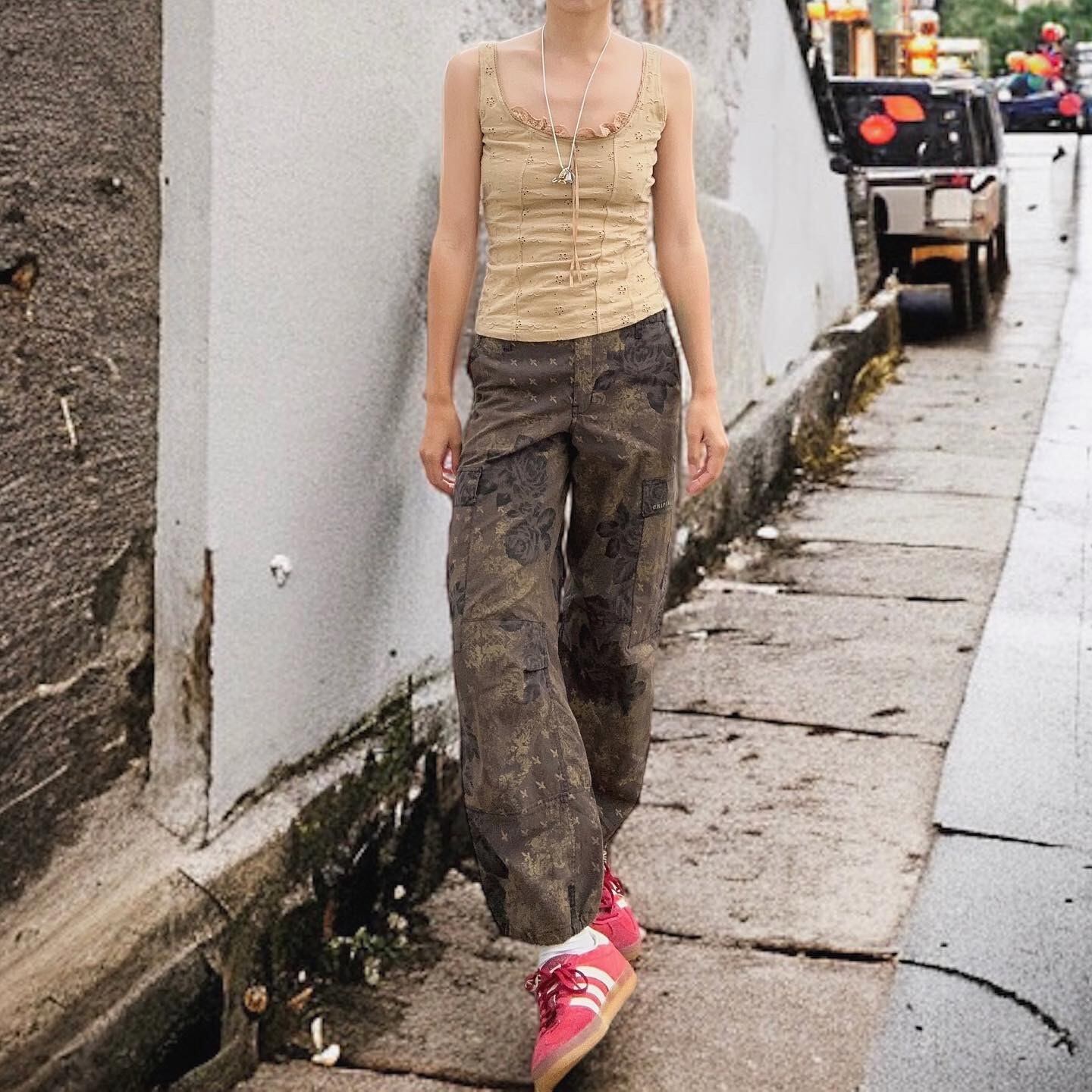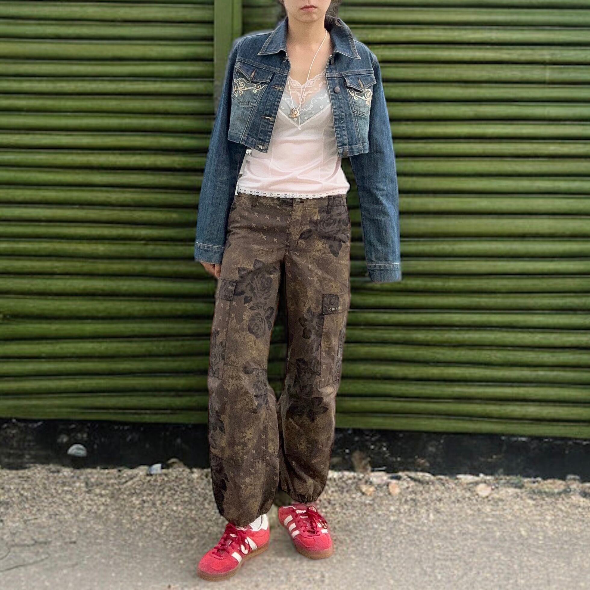 よく見ると普通のカモ柄ではなくお花がプリントされている珍しいカーゴパンツです!