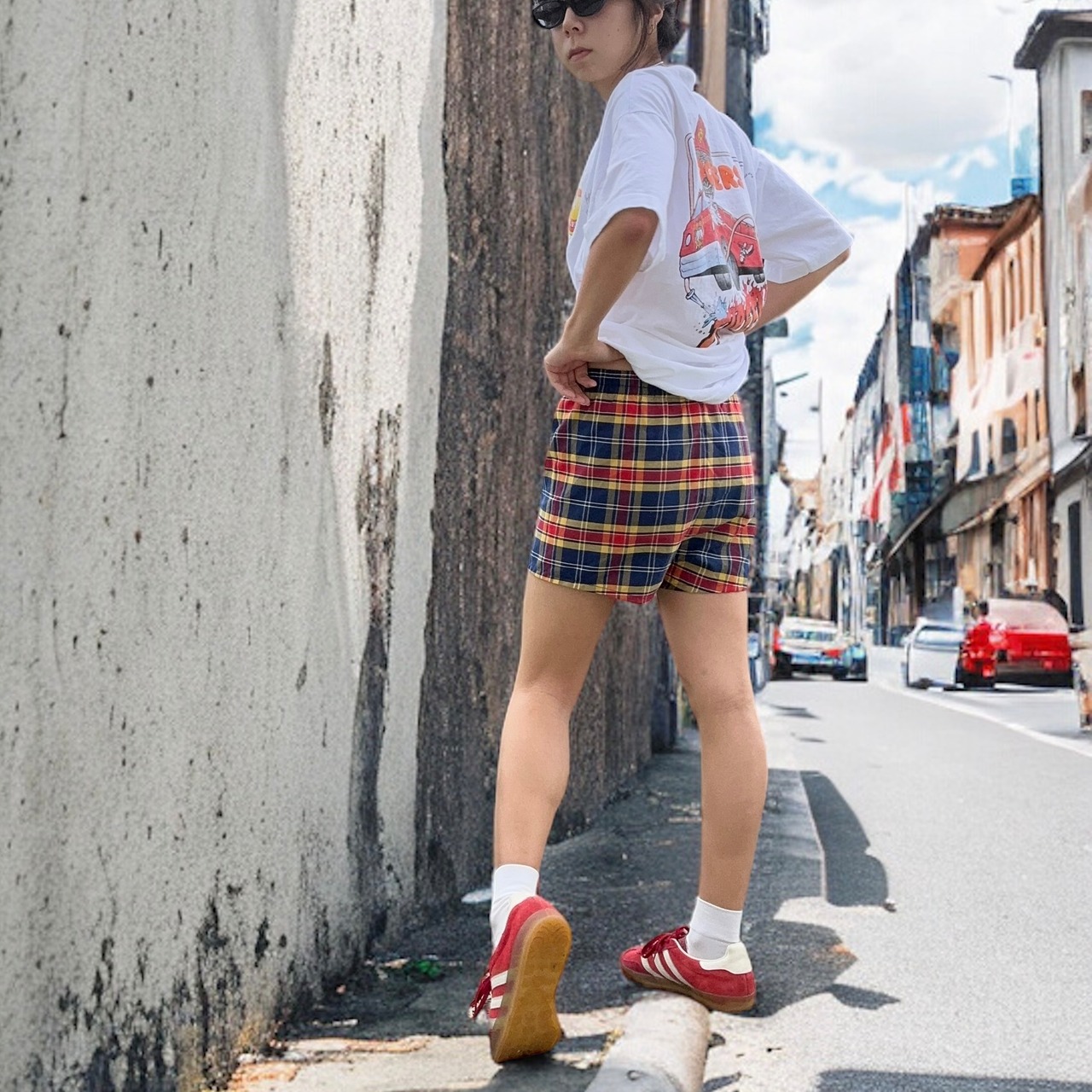 着用モデルサイズ:身長168㎝/50kg/骨格ストレート/肩幅広めのいかり肩/肩幅44㎝/二の腕周り24㎝/胸囲82㎝/ウエスト64㎝/ヒップ87㎝/太もも周り47㎝/股下78㎝