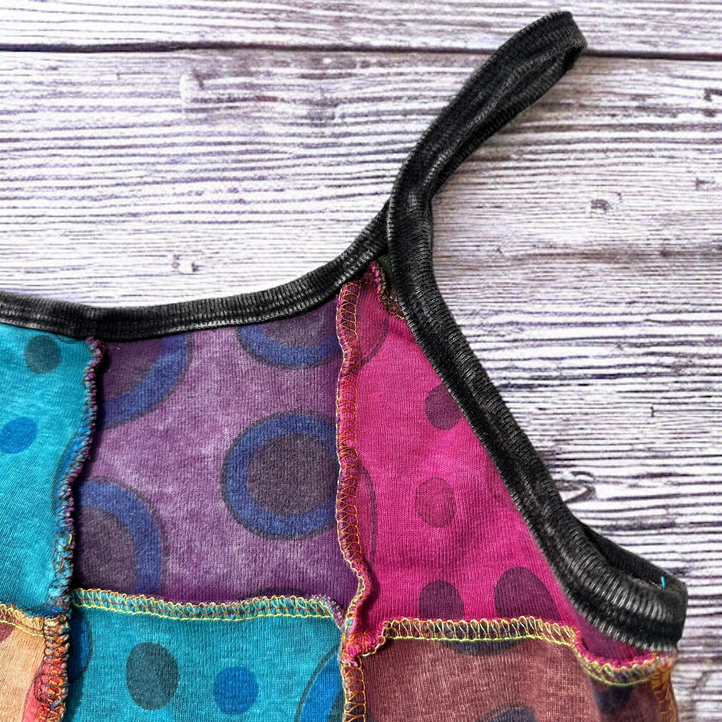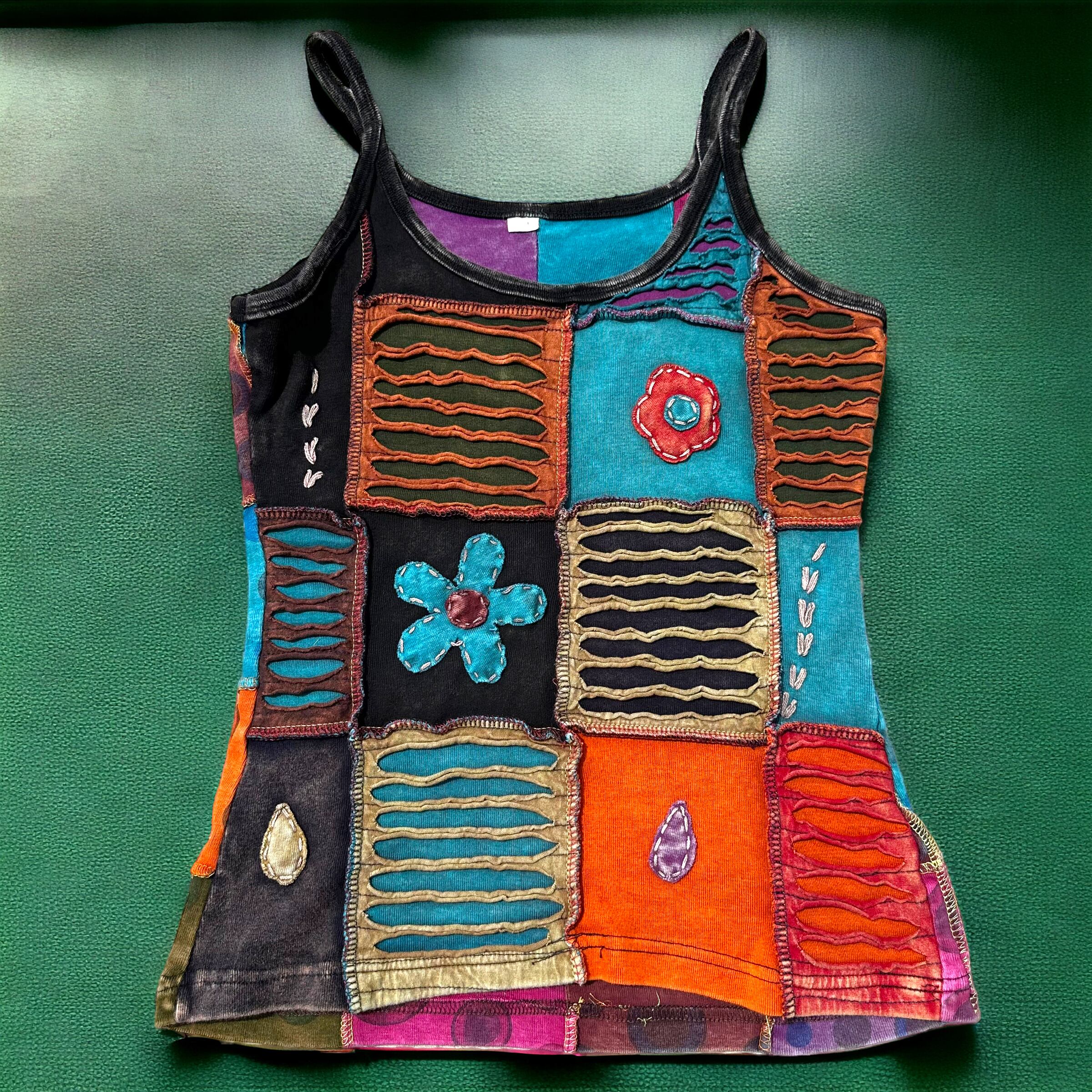 カラフルなお花のパッチワークとダメージ加工が施されたオシャレなトップスです!