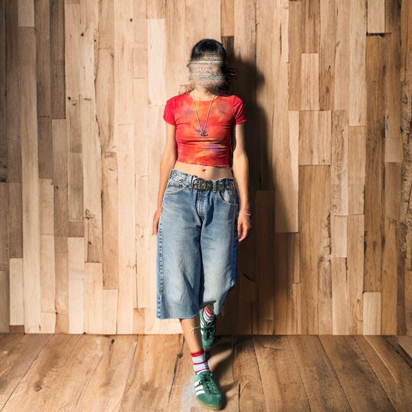 着用モデルサイズ:身長168㎝/51kg/骨格ストレート/肩幅広めのいかり肩/肩幅44㎝/二の腕周り25㎝/胸囲82㎝/ウエスト65㎝/ヒップ88㎝/太もも周り48㎝/股下78㎝