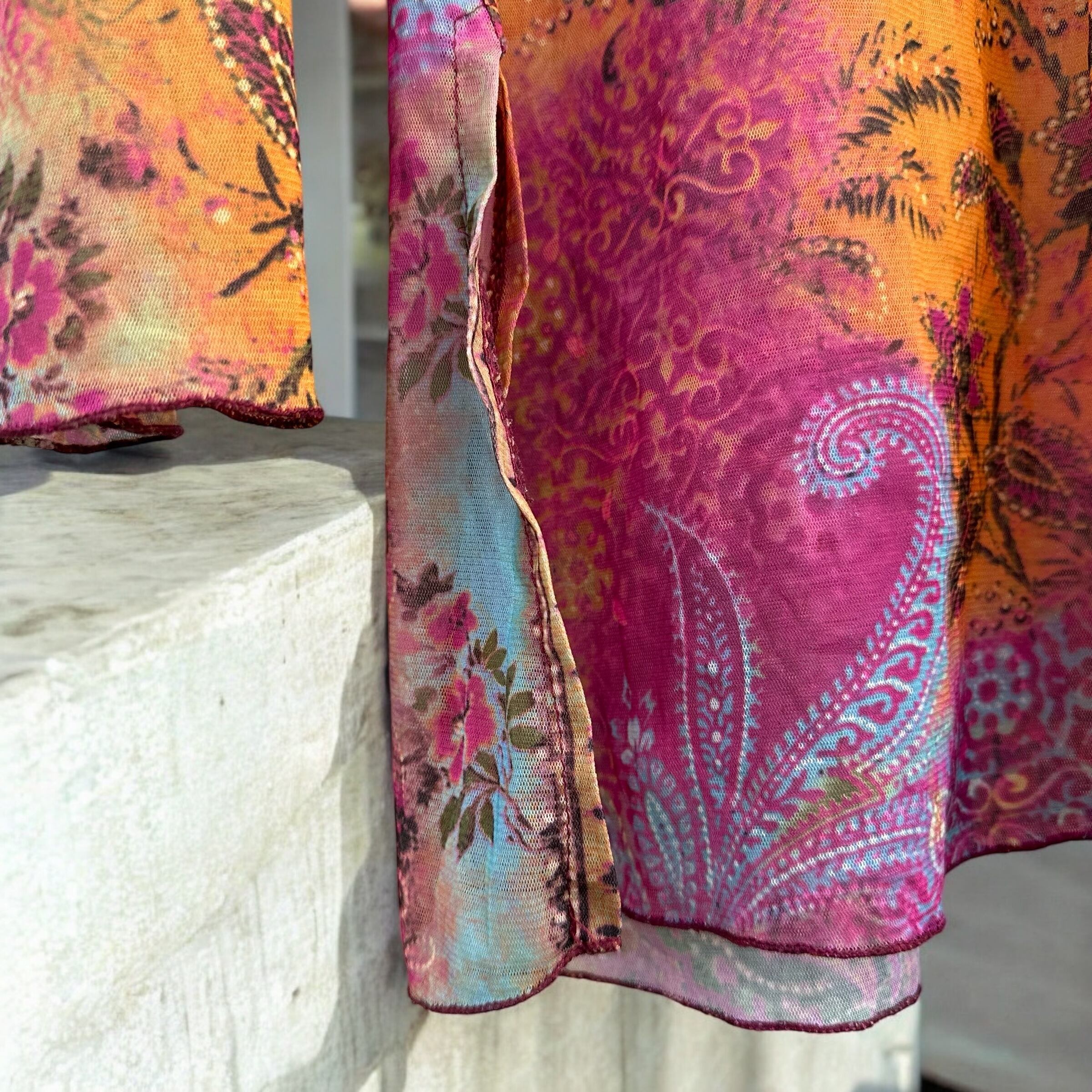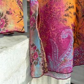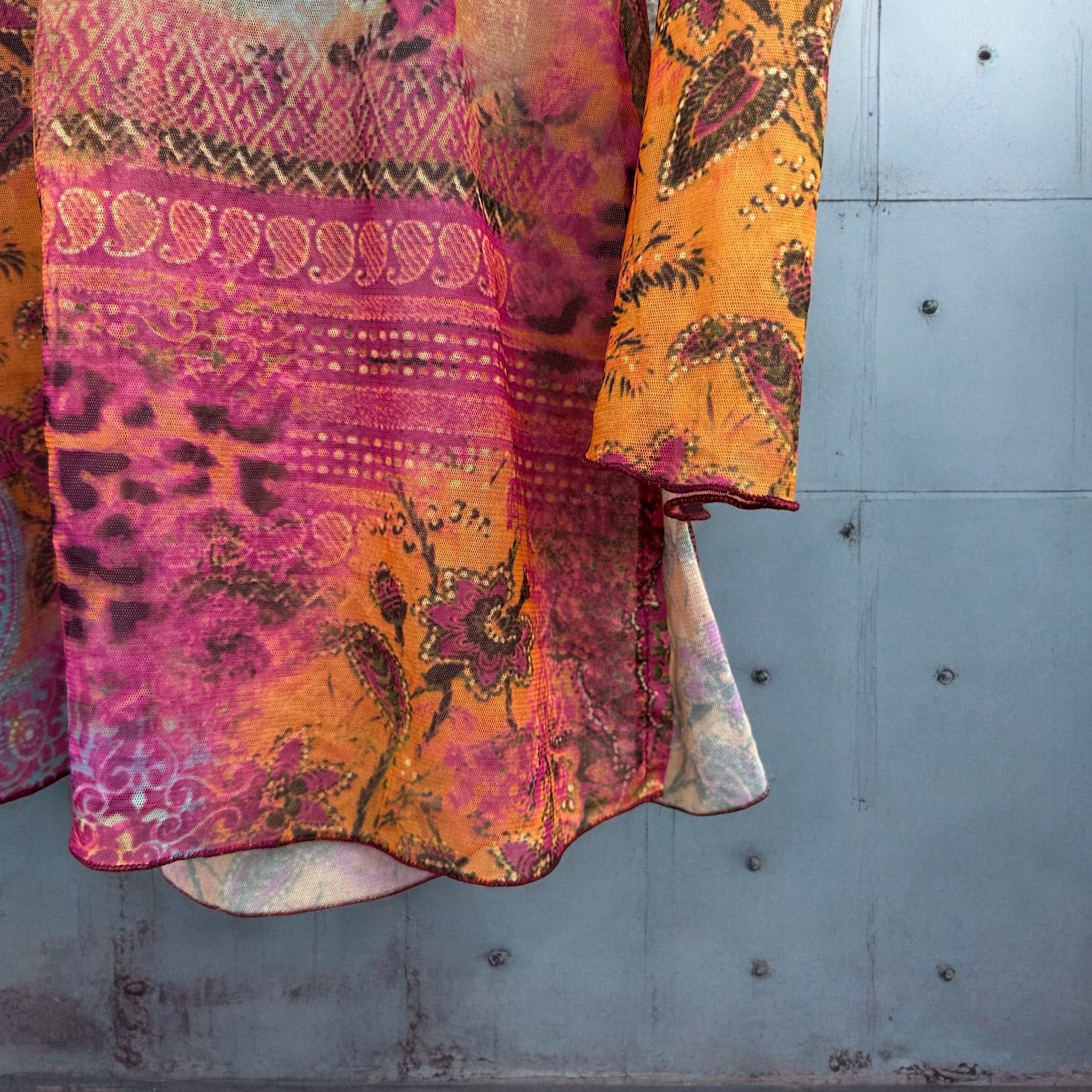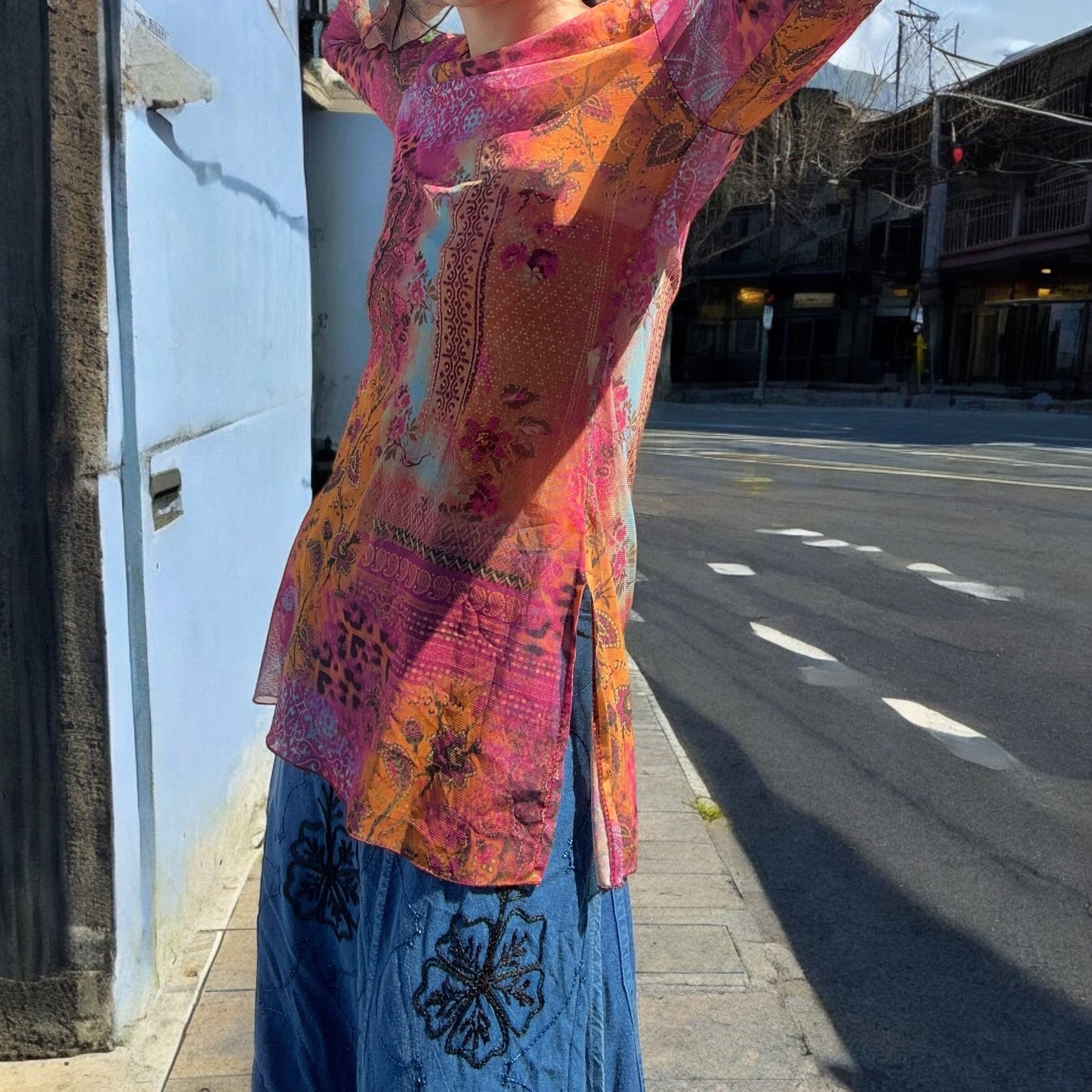 左右のスリットや、袖口にかけ広がるデザインが綺麗なボディラインをだしています