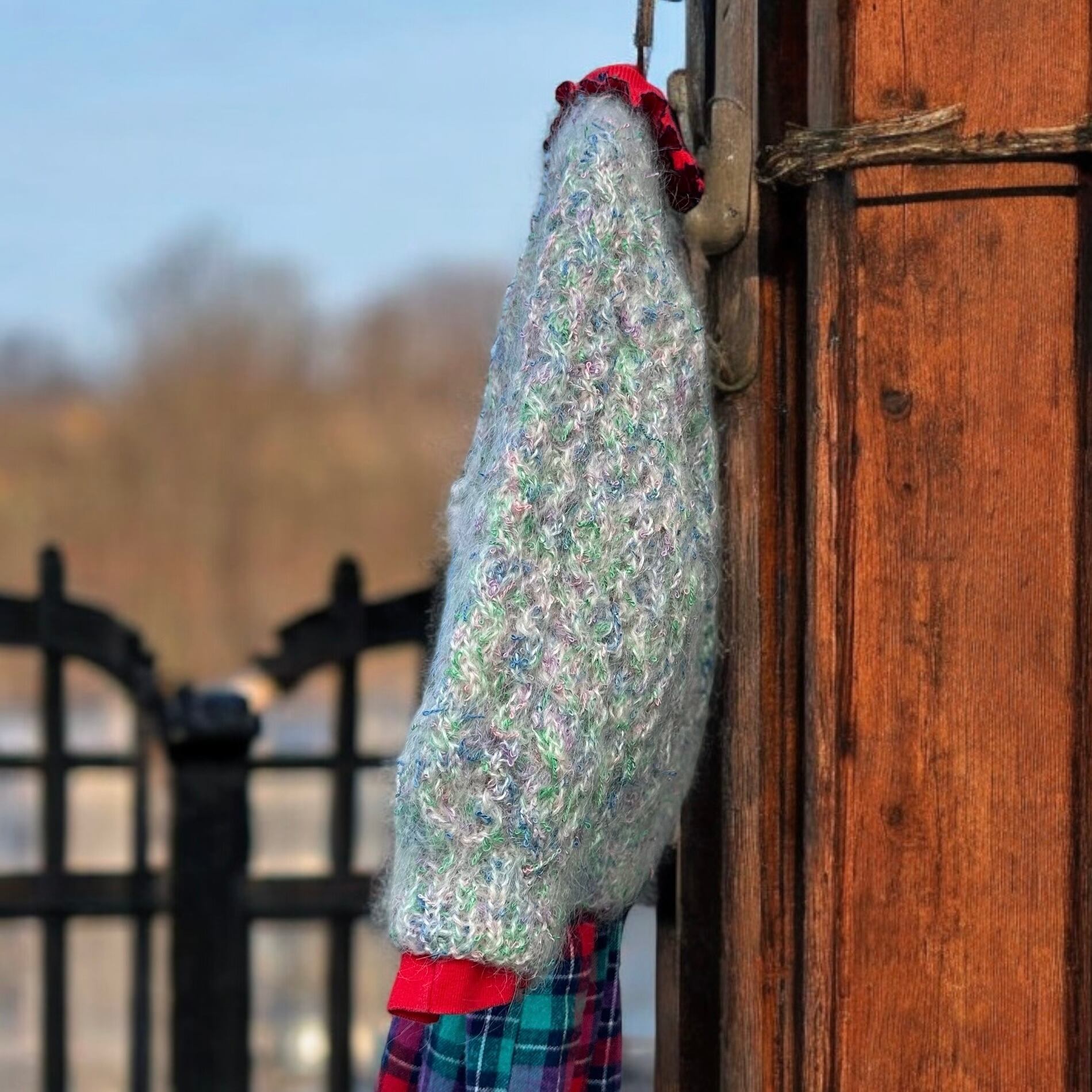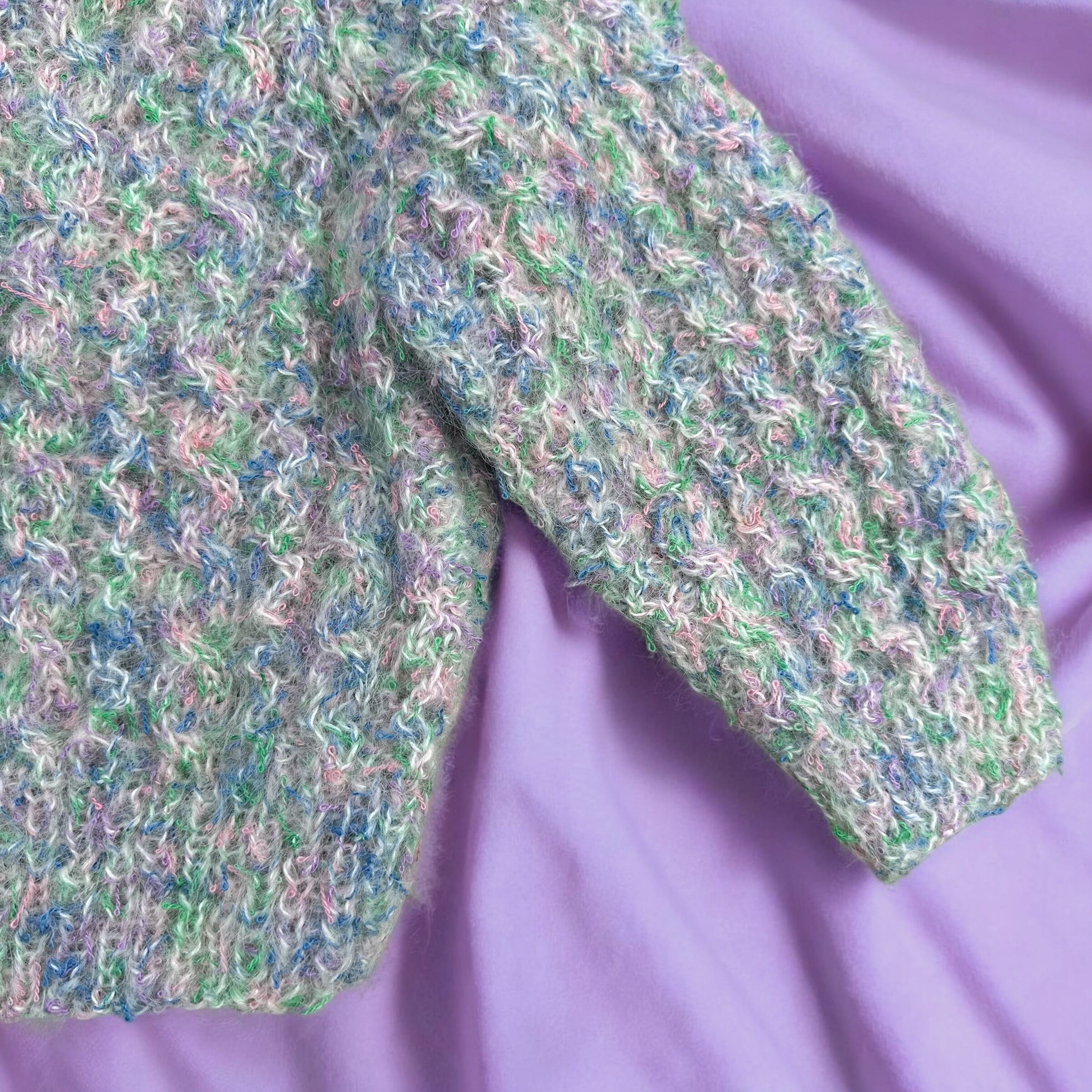 カラフルな糸が編み込まれたふっわふわのモヘアニットです