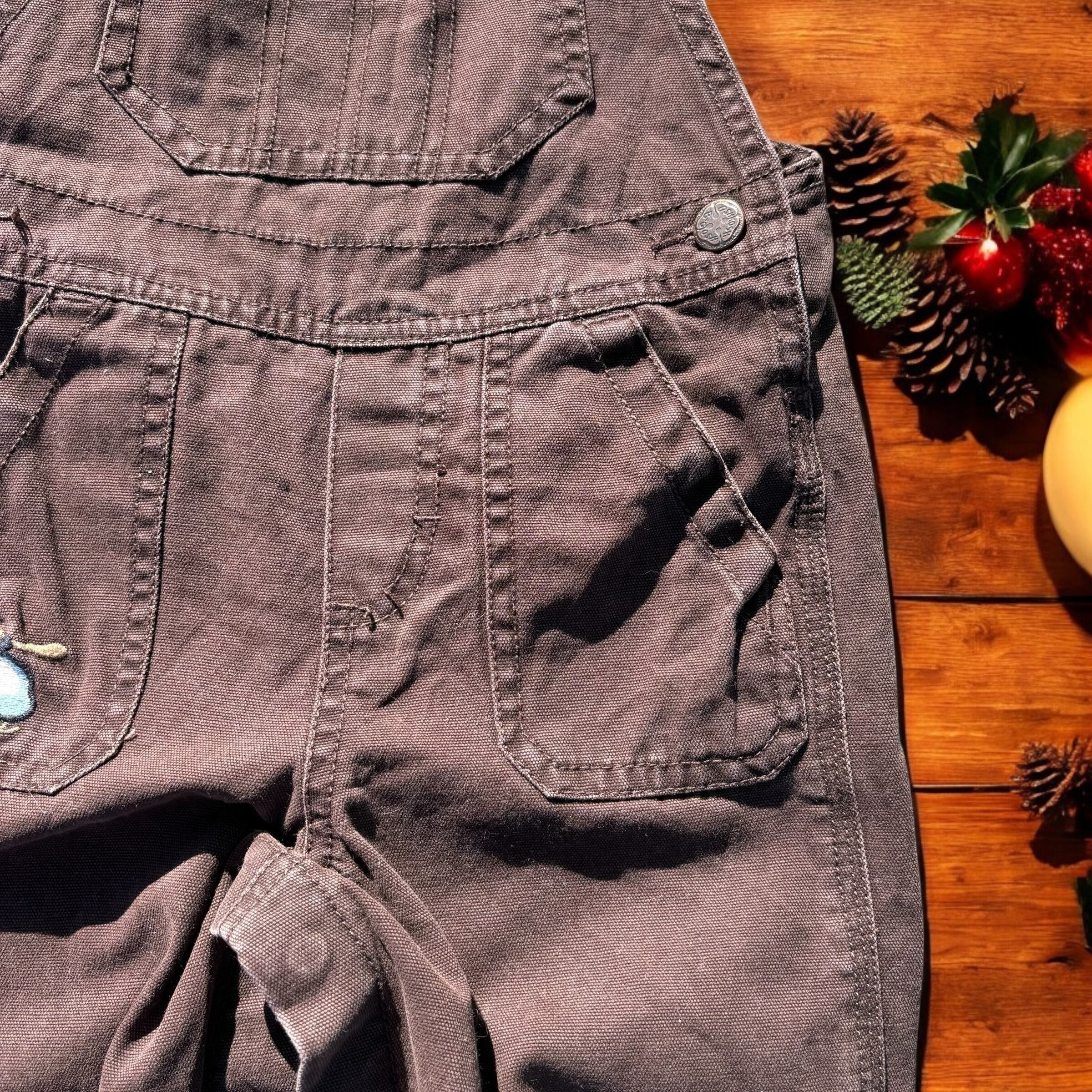 平置き採寸:総丈(肩紐含む)約70.5㎝/総丈(肩紐含まず胸元から)約63㎝/身幅(ウエストスナップボタン下)約28.5㎝/股下約28㎝