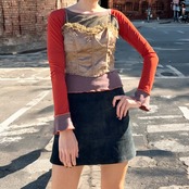 着用モデルサイズ:身長168㎝/51kg/骨格ストレート/肩幅広めのいかり肩/肩幅44㎝/二の腕周り25㎝/胸囲82㎝/ウエスト65㎝/ヒップ88㎝/太もも周り48㎝/股下78㎝