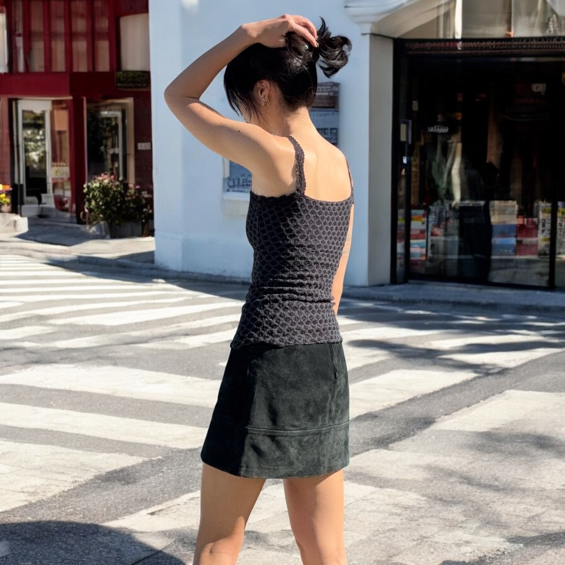 着用モデルサイズ:身長168㎝/51kg/骨格ストレート/肩幅広めのいかり肩/肩幅44㎝/二の腕周り25㎝/胸囲82㎝/ウエスト65㎝/ヒップ88㎝/太もも周り48㎝/股下78㎝